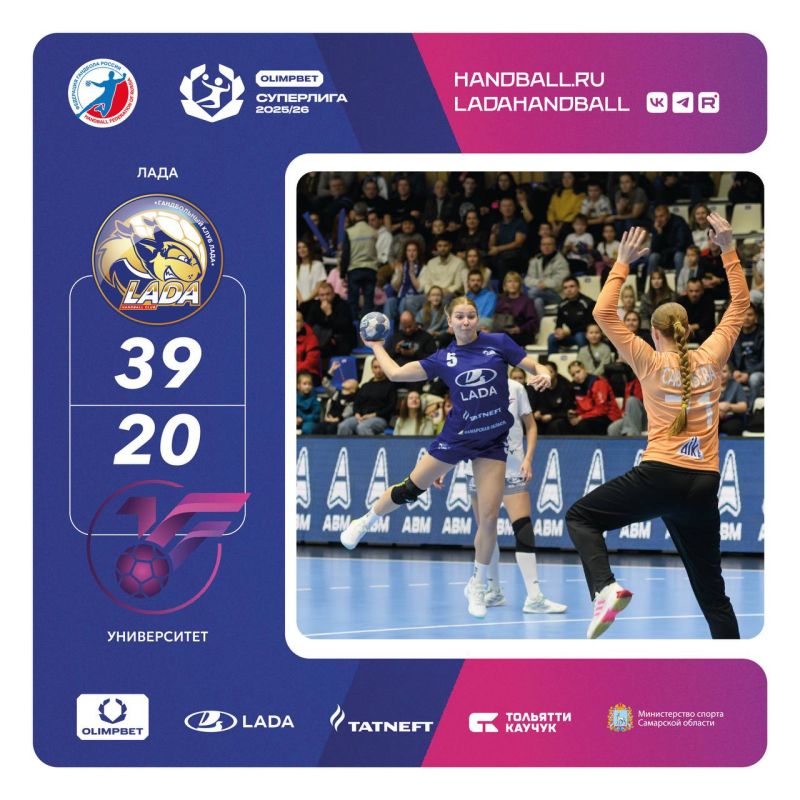 «Лада» - «Университет» завершился со счетом 39:20 (21:10).OLIMPBET Суперлига 2025/2026.© Фото: ГК «Лада»Телеканал ТОЛЬЯТТИ 24 в MAX Предложить новость#ладамедиа