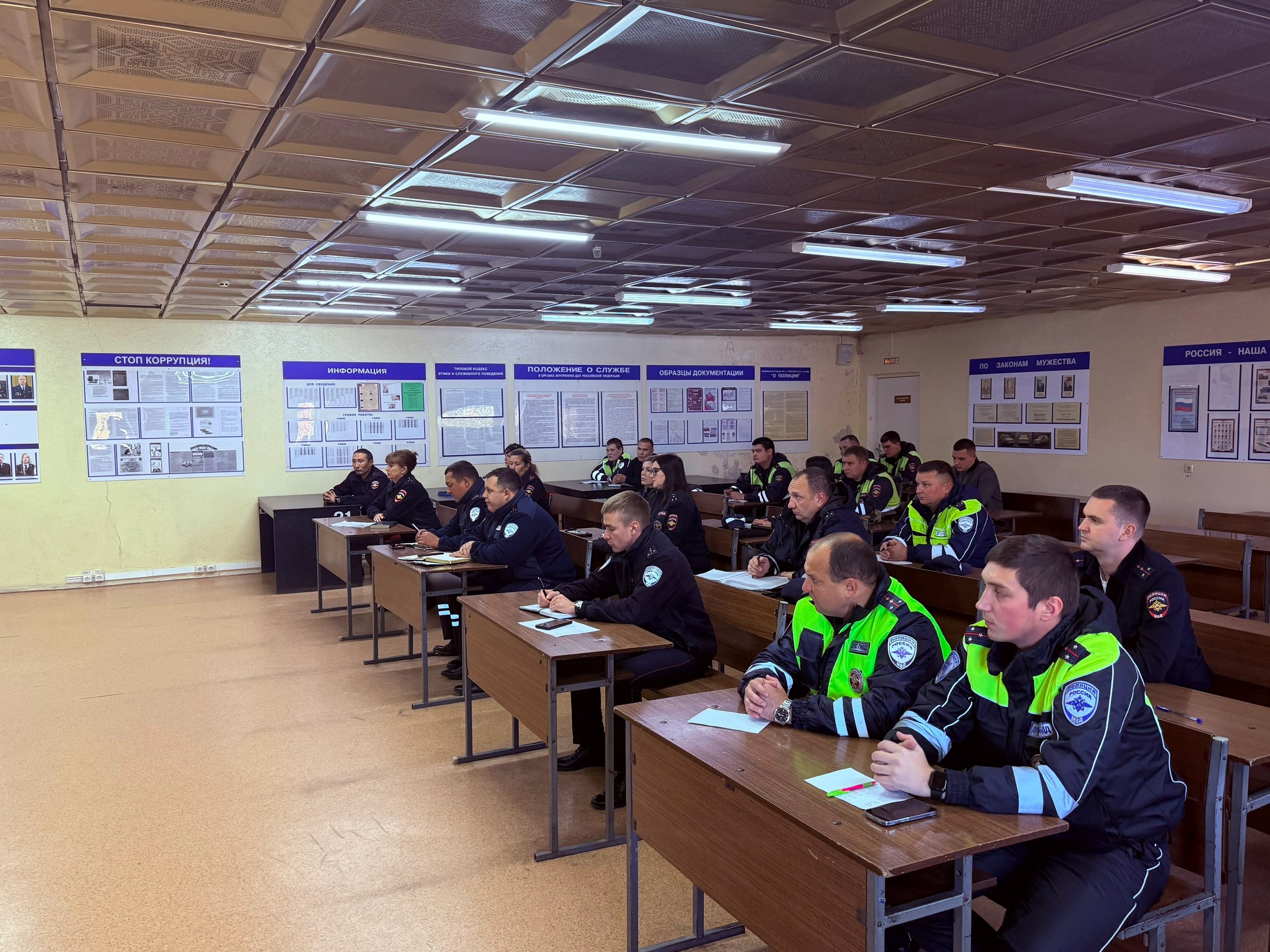 Инструктаж личного состава перед заступлением на службу провёл начальник Госавтоинспекции — подполковник полиции Алексей Качкин.