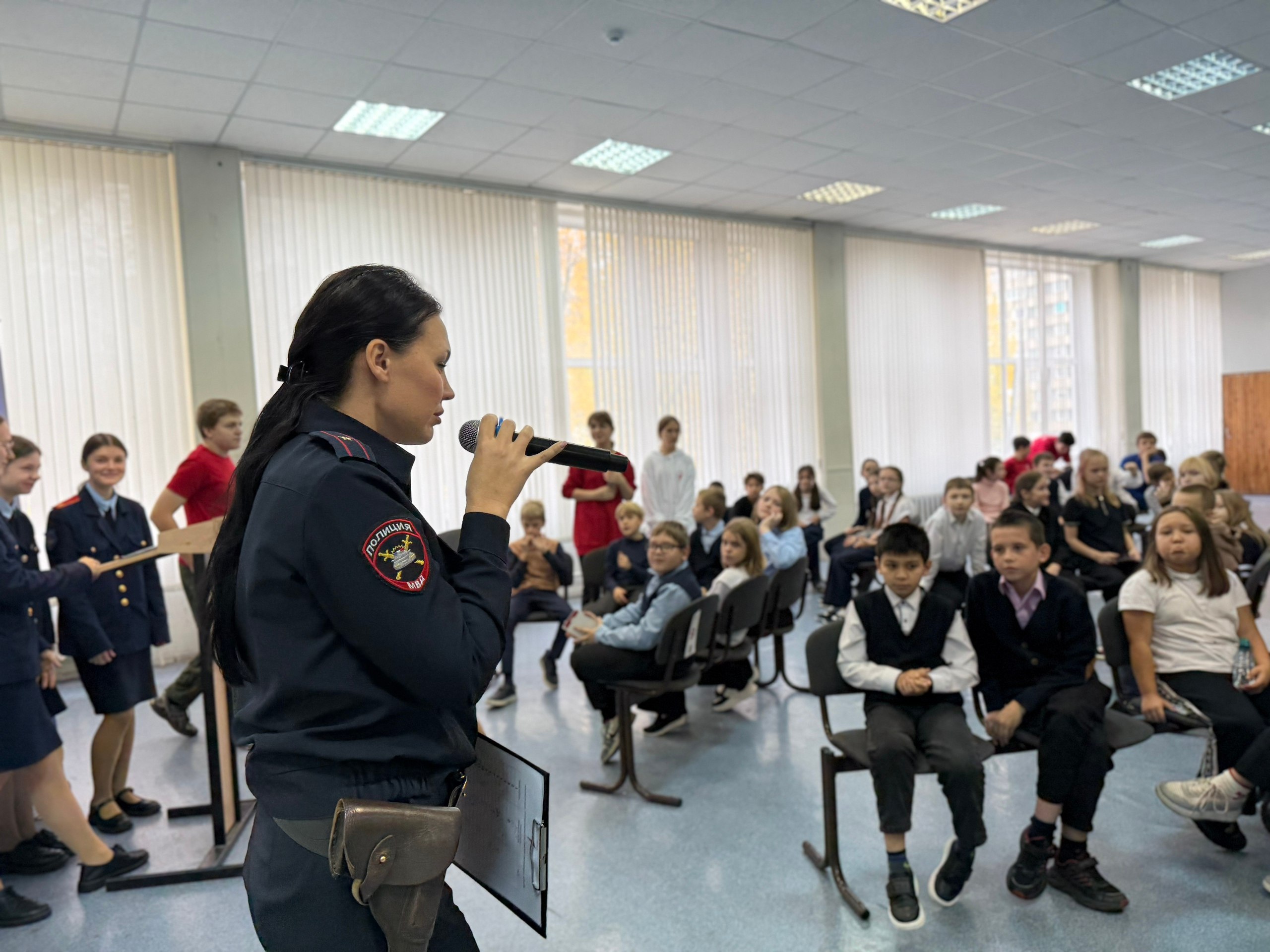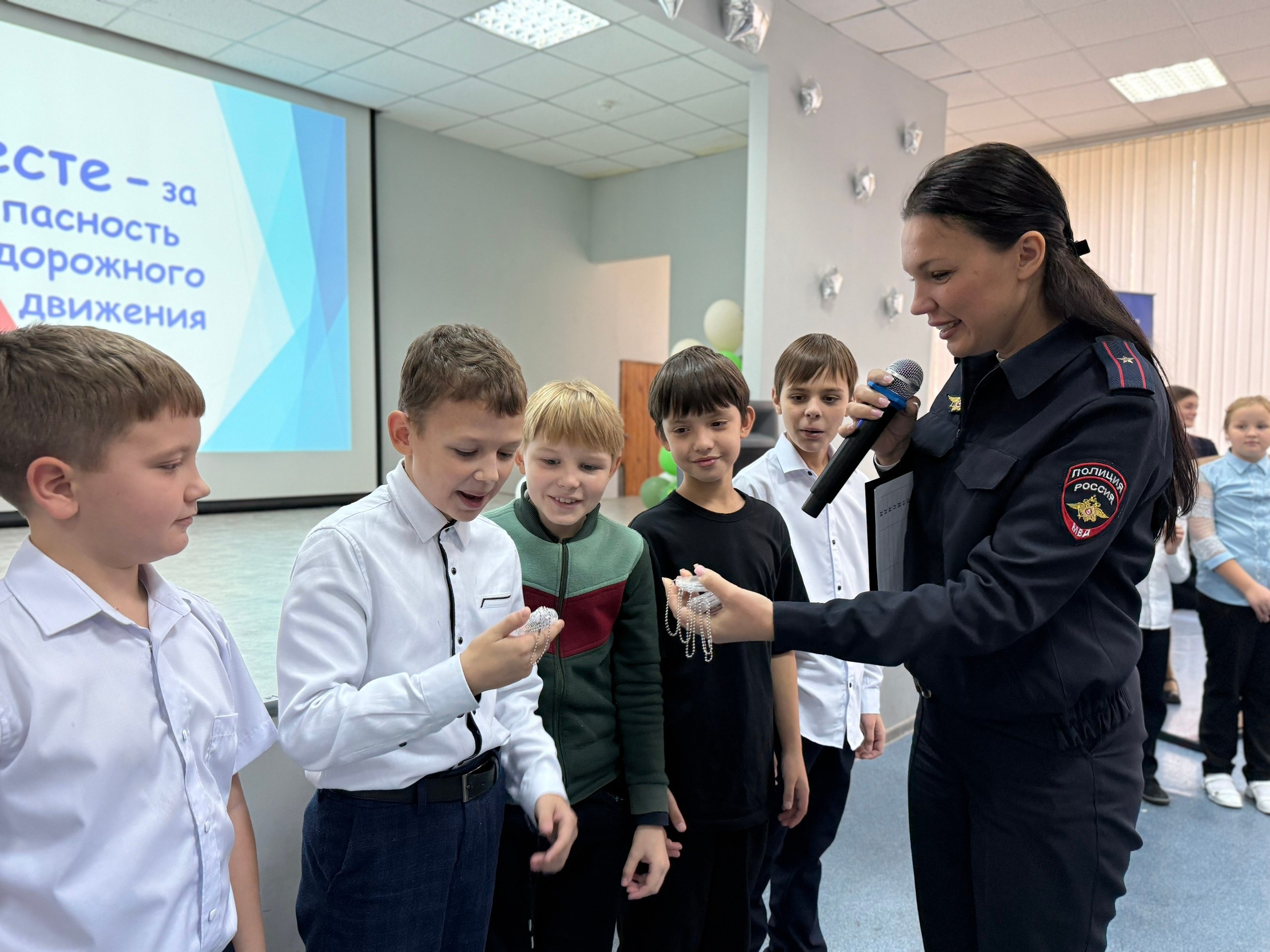Ребят приветствовала инспектор отделения пропаганды безопасности дорожного движения тольяттинской Госавтоинспекции, майор полиции Ларионова Виктория Сергеевна.