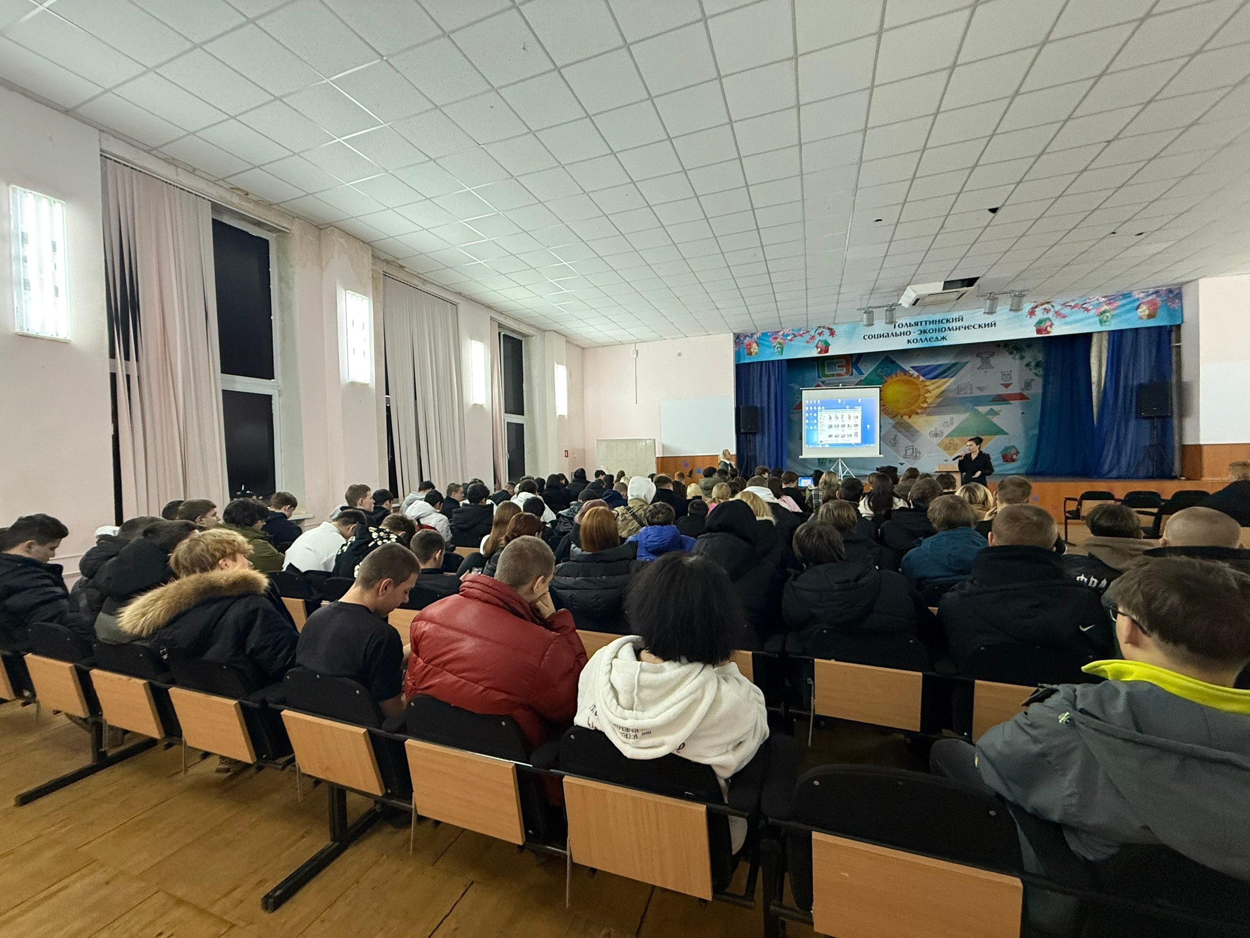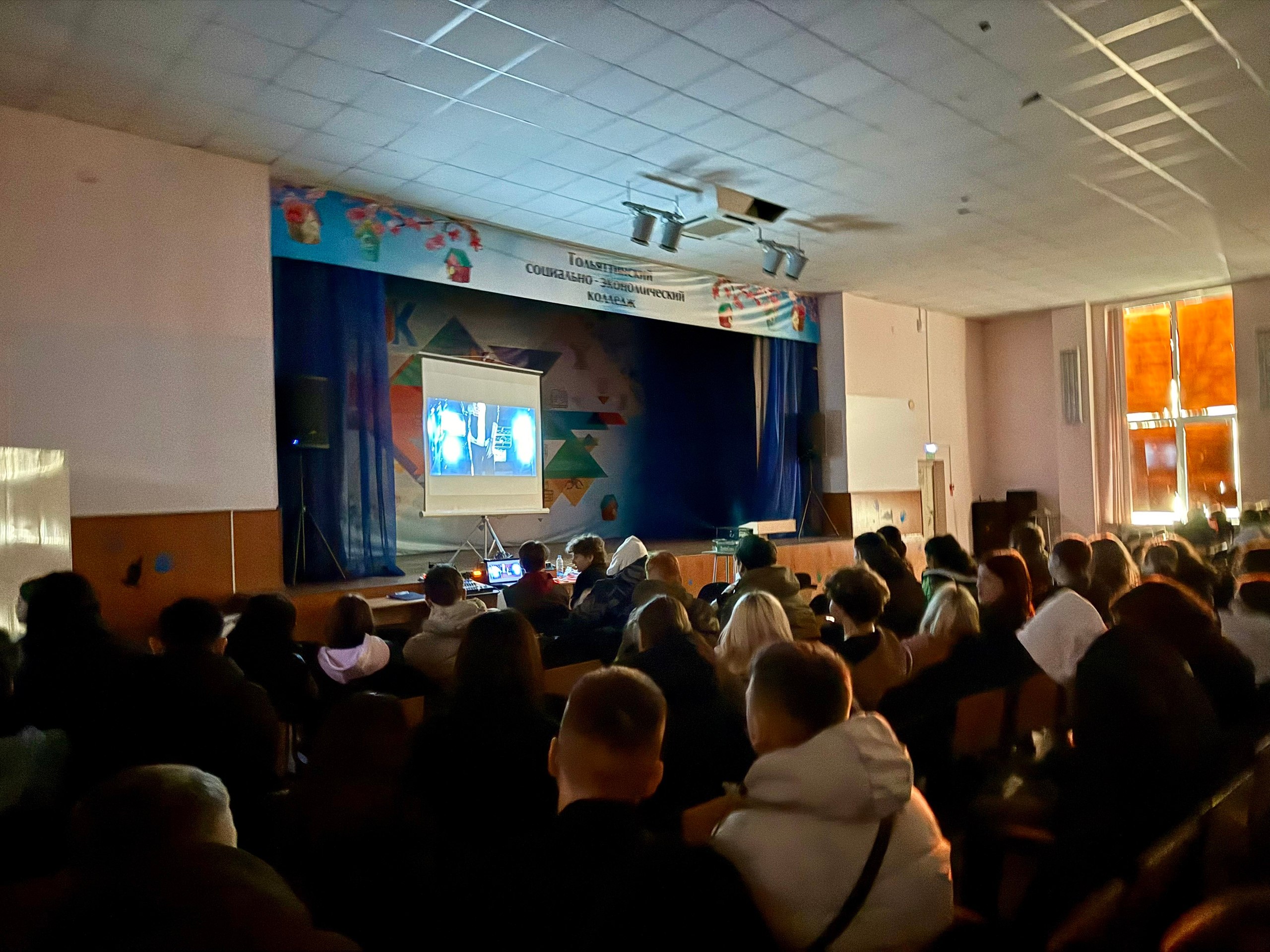 Инспекторы показывают студентам Тольяттинского социально-экономического колледжа видеоматериалы с мест ДТП и подробно разбирают типичные ошибки пешеходов