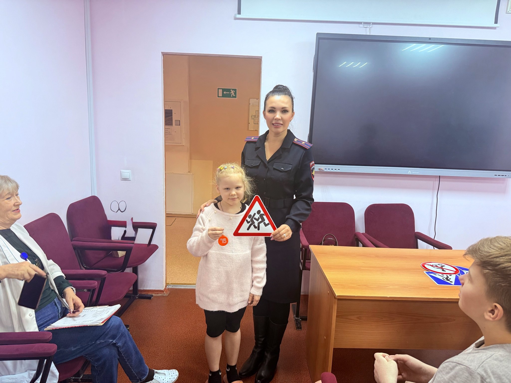 А в финале нашего полезного занятия каждый юный участник получил практичный подарок — яркий световозвращающий значок! Теперь у наших новых друзей есть свой персональный «маячок безопасности».