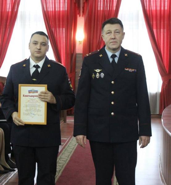 На оперативном совещании начальник Управления МВД России по г. Тольятти Илдар Чагаев вручил сотрудникам патрульно-постовой службы полиции - старшине полиции Роману Бокку, сержанту полиции Даниле Данилову, старшему сержанту полиции Анастасии Началовой благодарственные письма за профессиональное выполнение должностных обязанностей. Полицейские предотвратили сбыт наркотического средства на территории Тольятти.