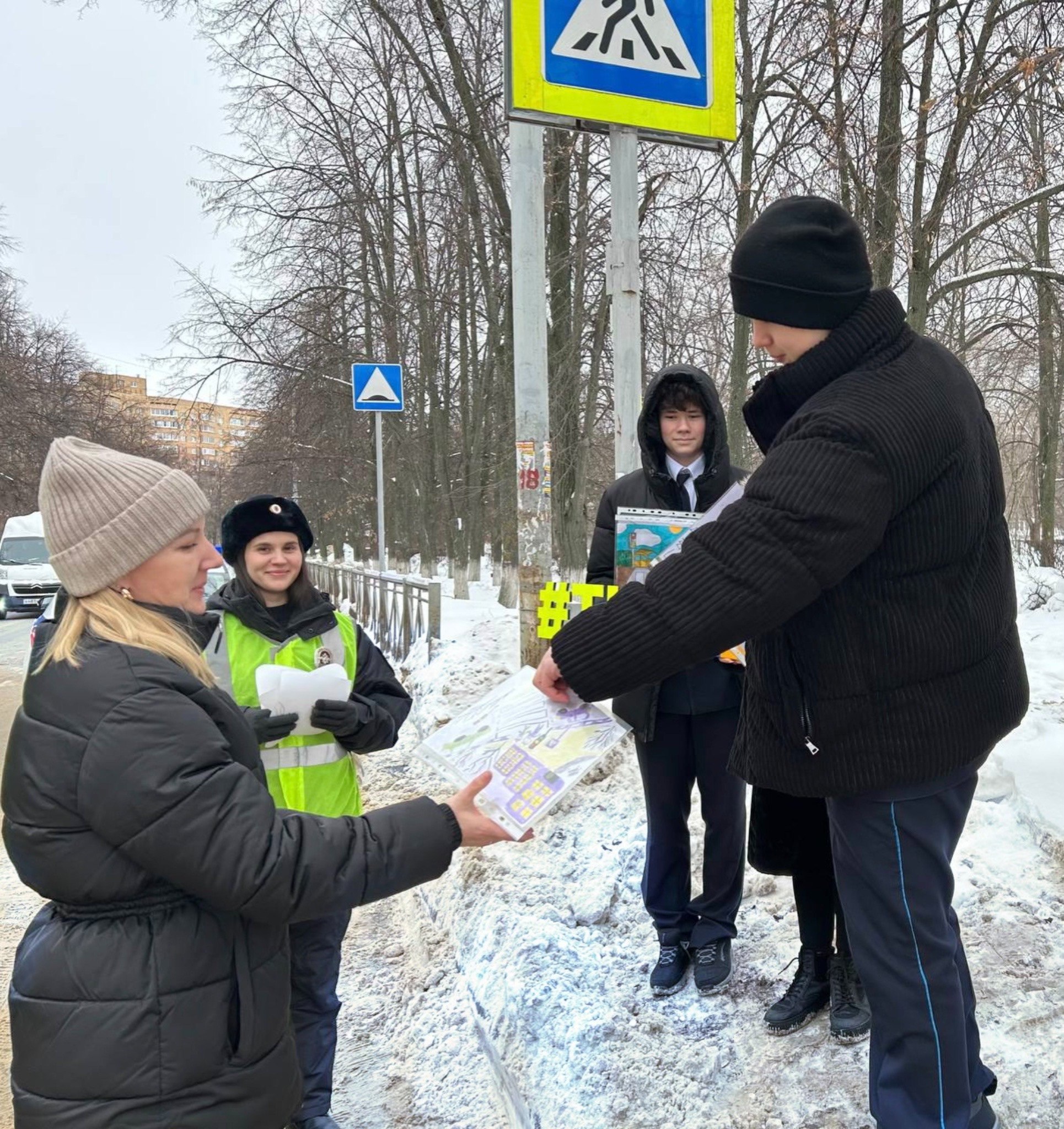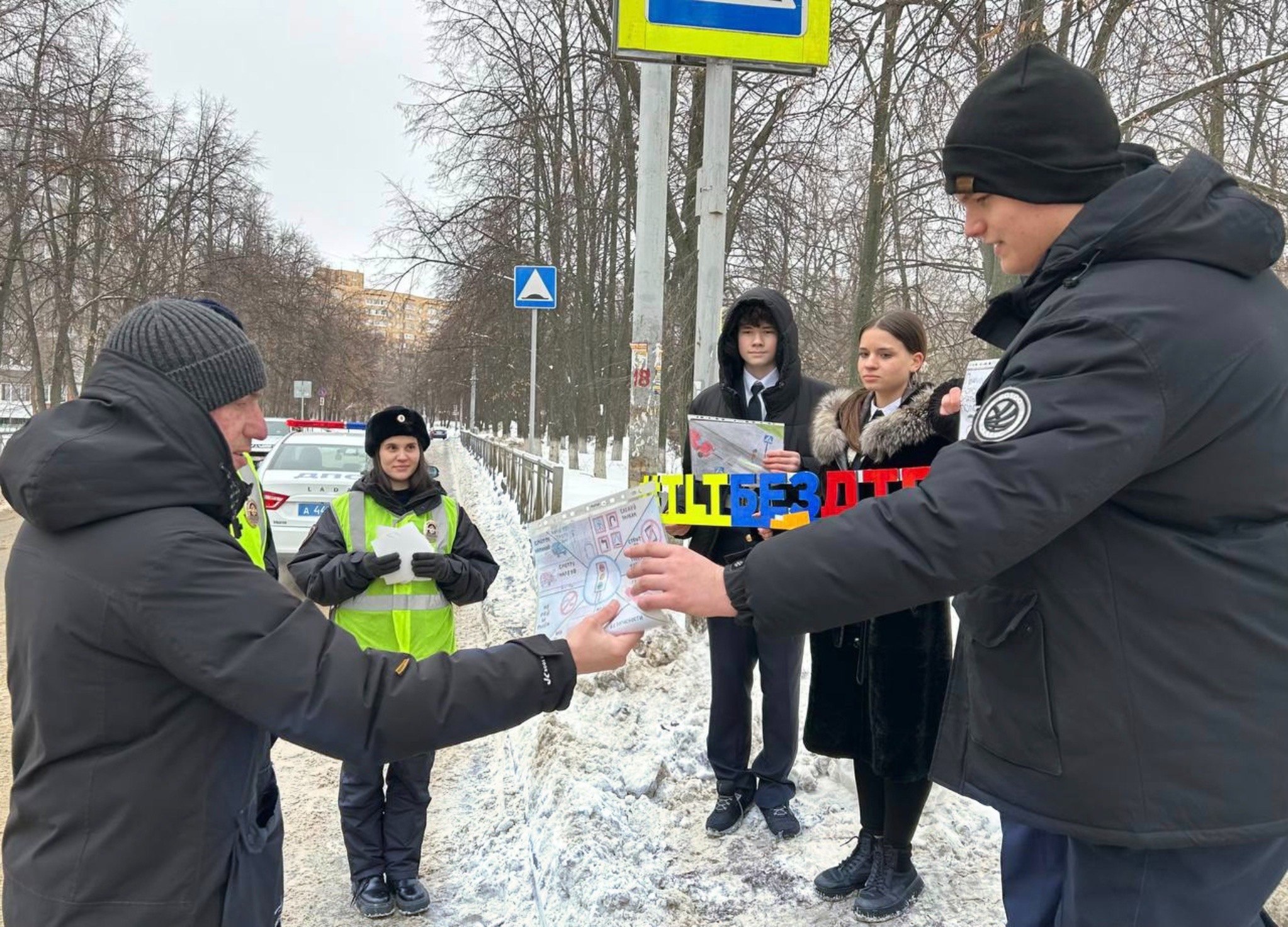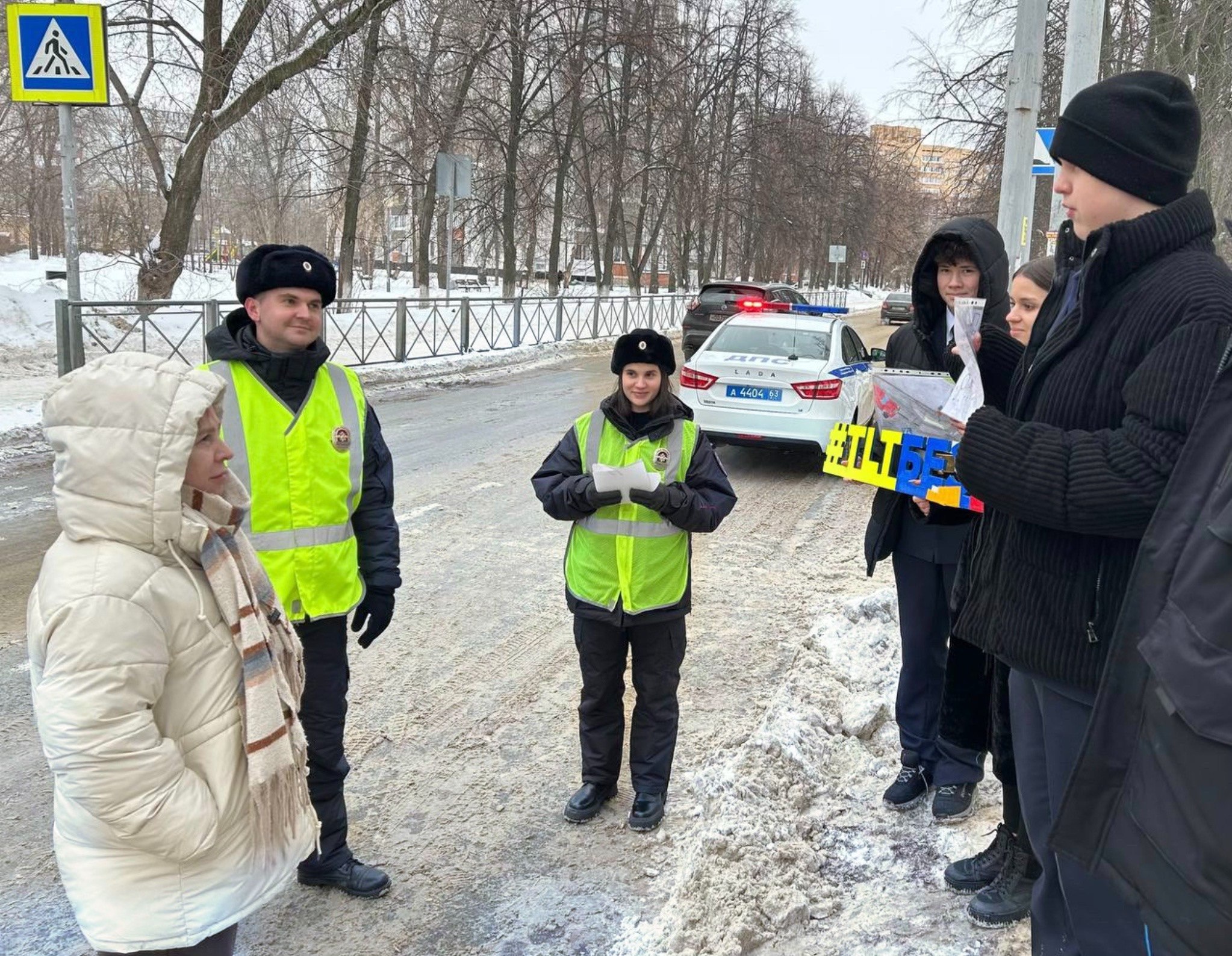 Цель мероприятия — предупредить дорожно-транспортные происшествия с участием пешеходов вблизи пешеходного перехода, которым ежедневно пользуются учащиеся.