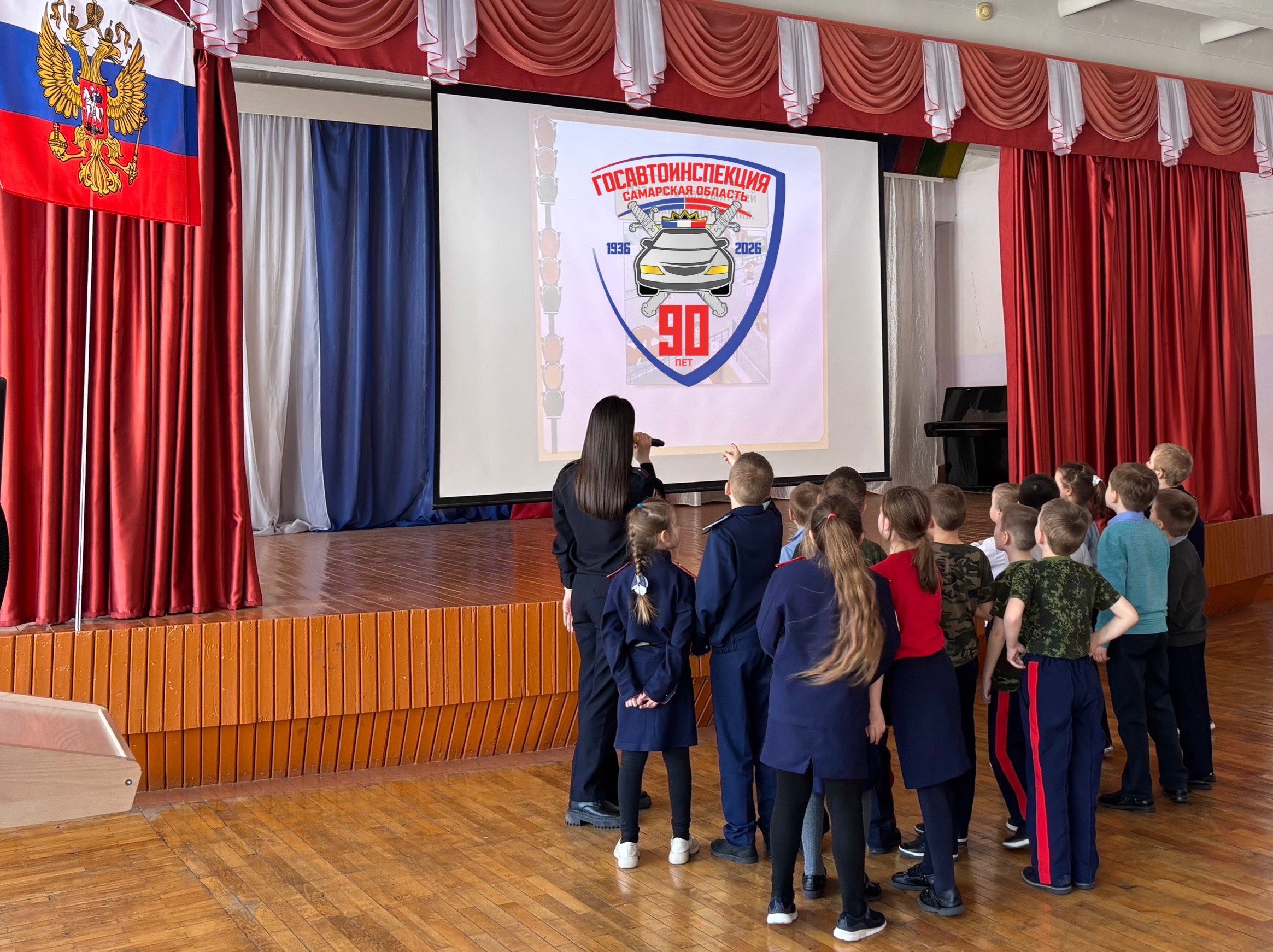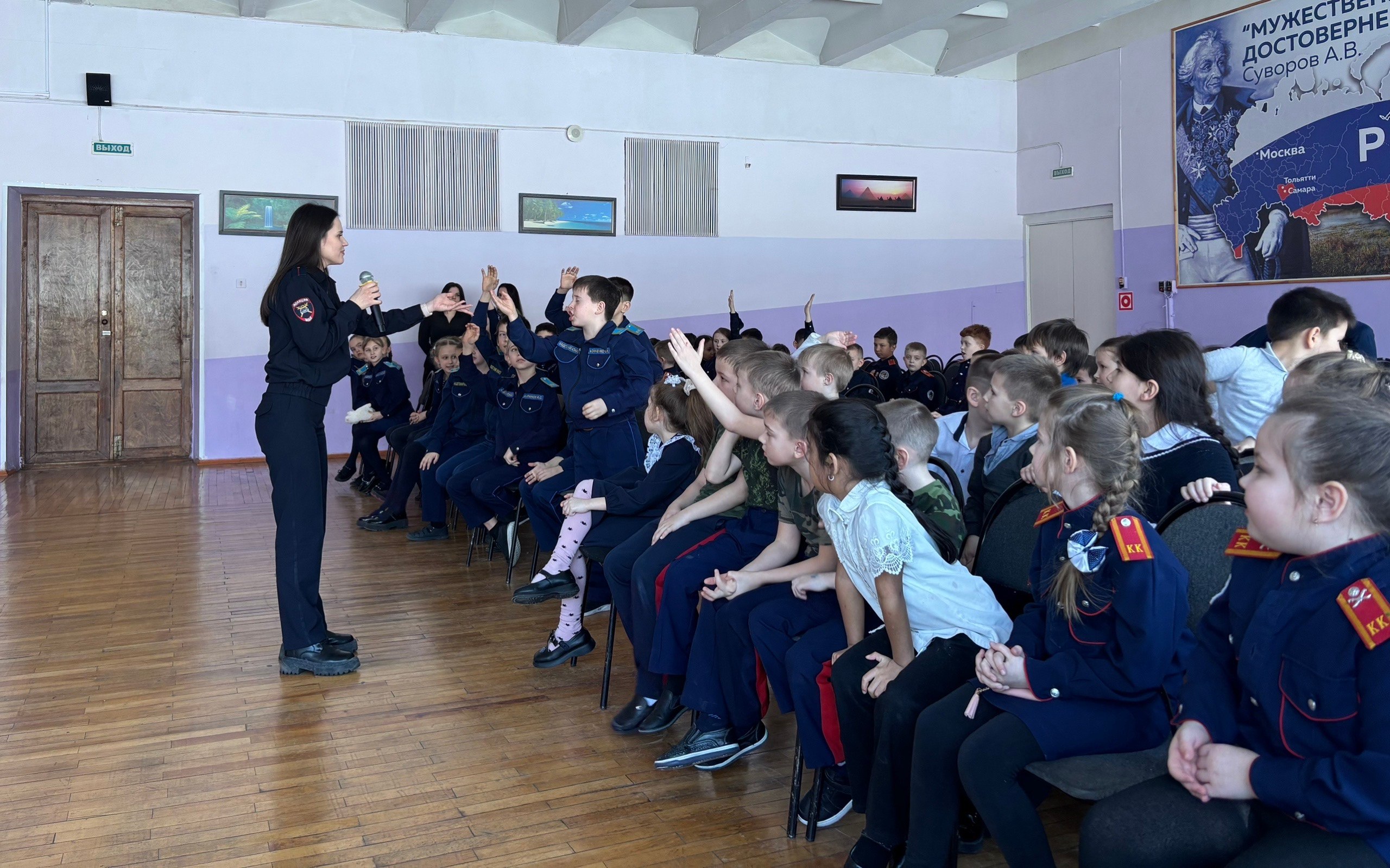 Сегодня сотрудники #ГосавтоинспекцииТольятти провели игру-викторину, посвященную правилам дорожного движения, в МБУ «Кадетская школа № 55» для учеников начальных классов.