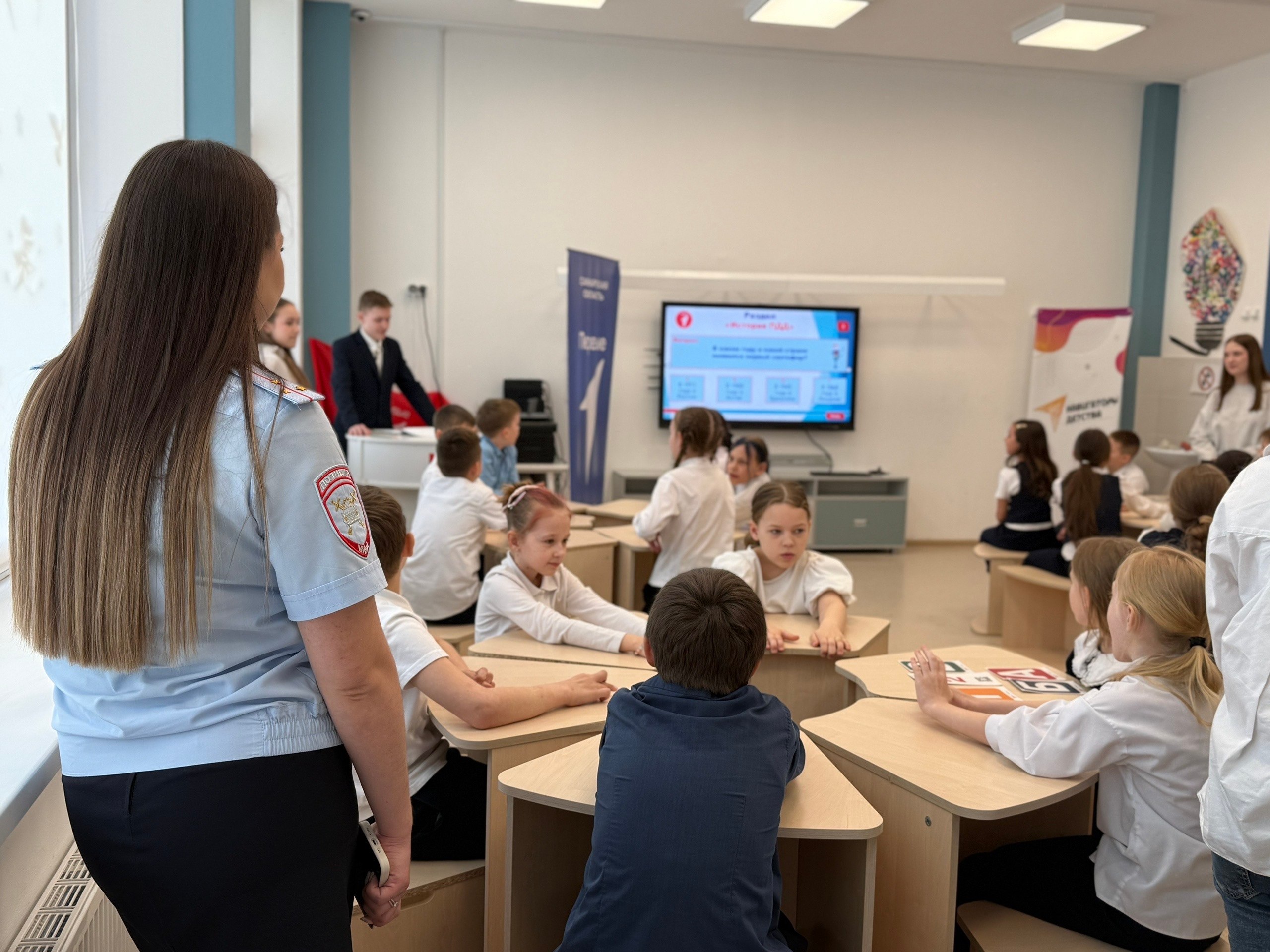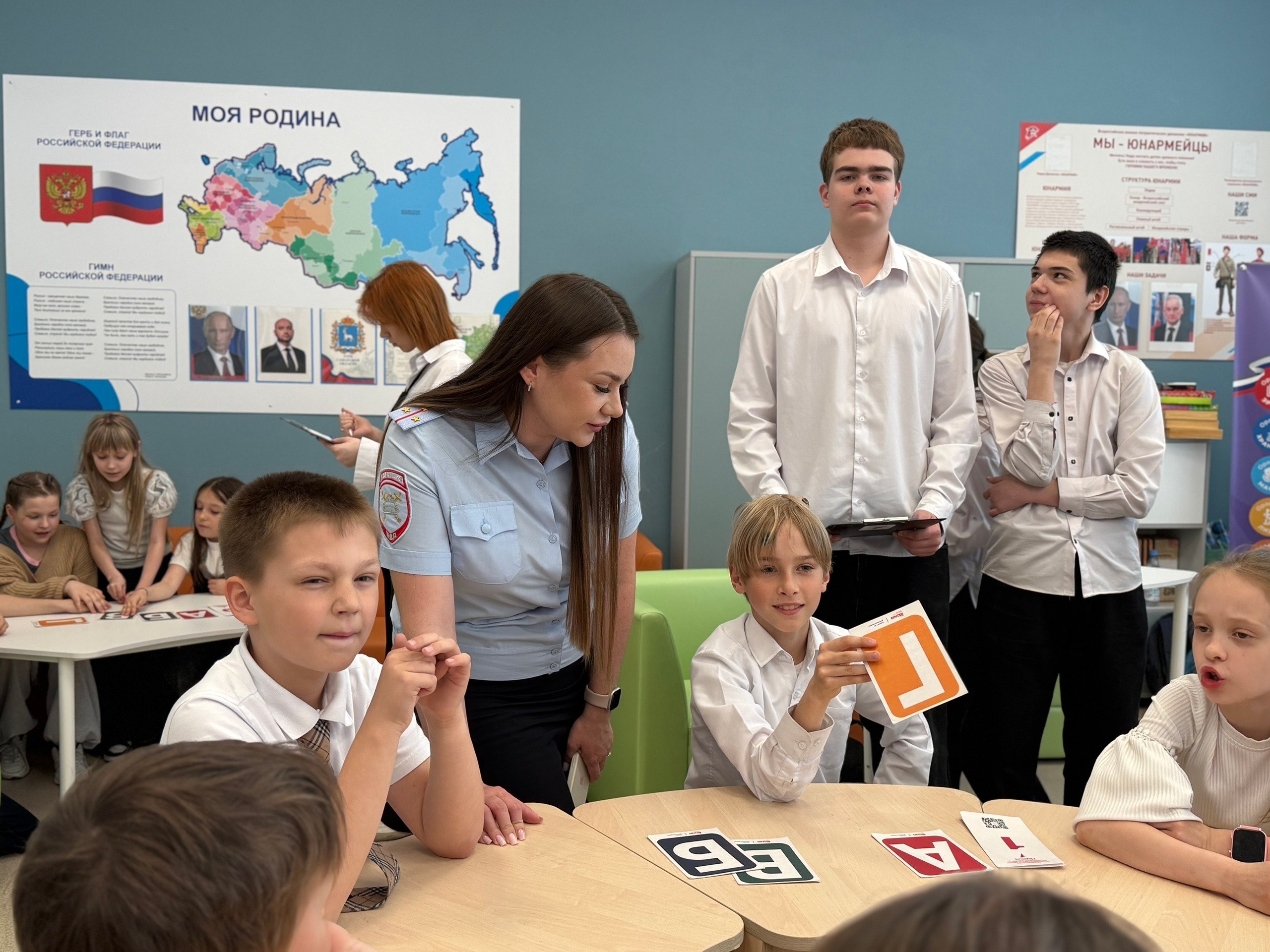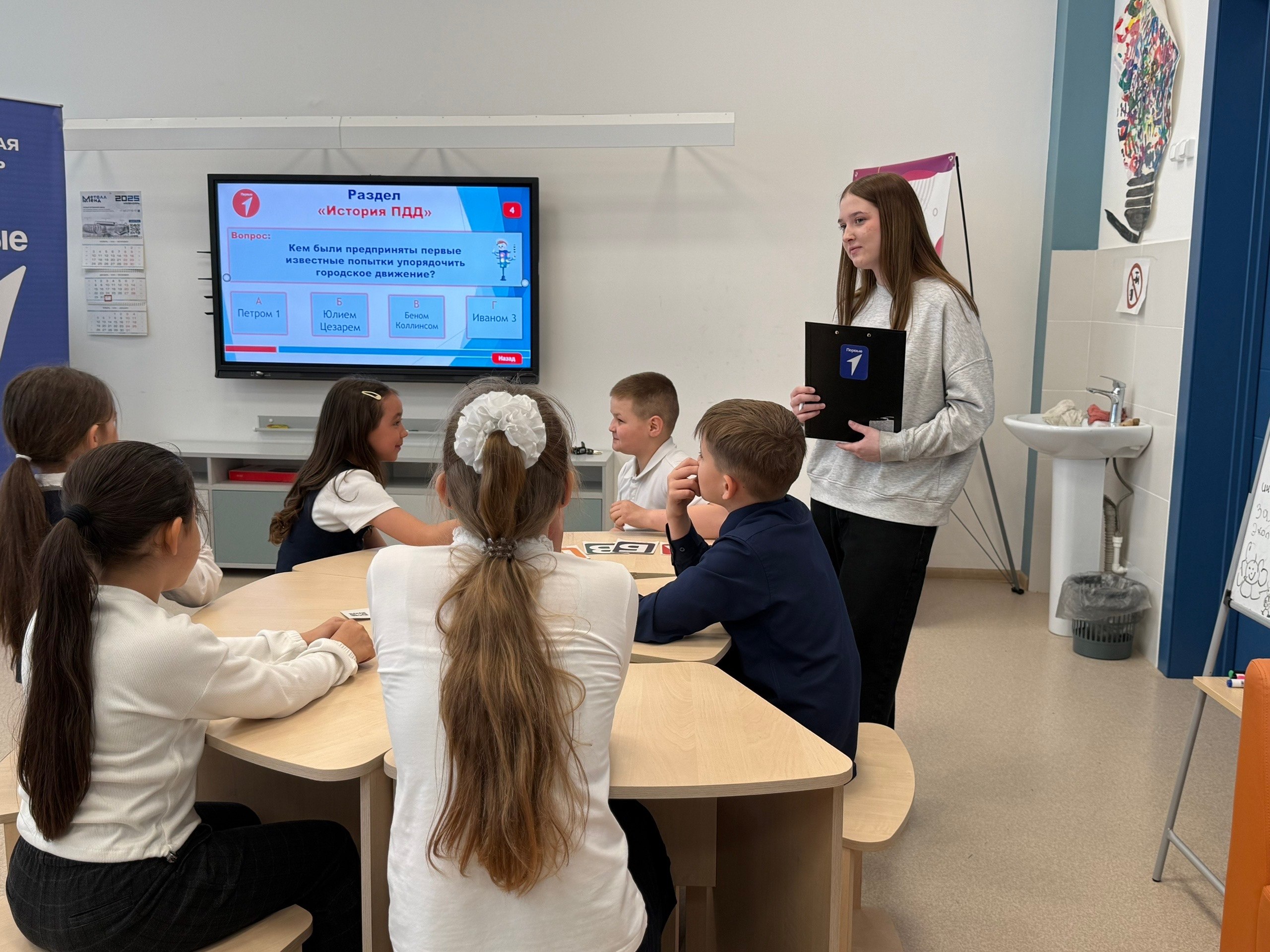 Ребят приветствовала и давала ценные советы Старший инспектор отделения пропаганды безопасности дорожного движения тольяттинской Госавтоинспекции (https://vk.ru/club117239550) старший лейтенант полиции Матосова Евгения Павловна.
