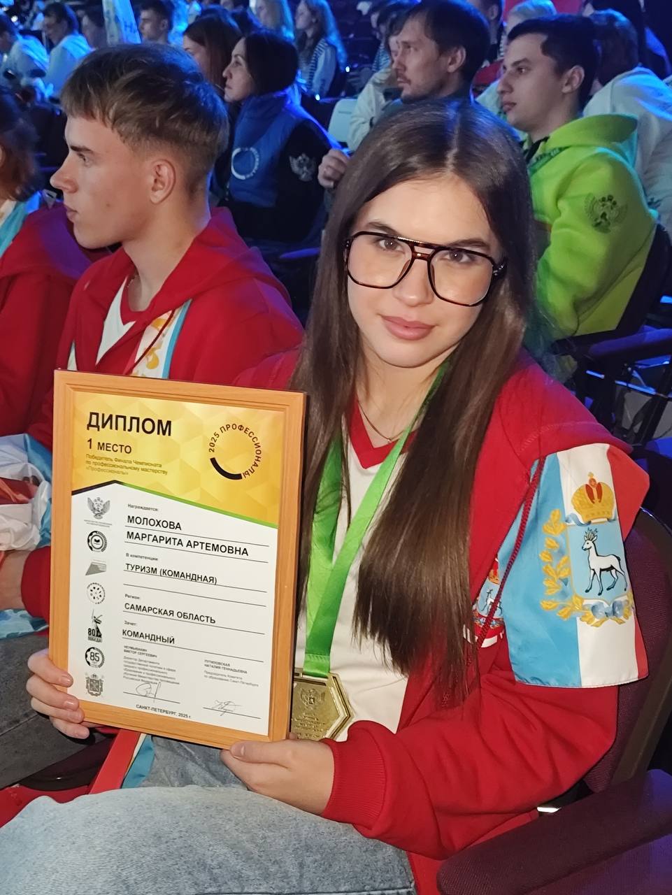 Тольяттинка Маргарита Молохова, ученица школы № 10, Института НАПРАВО.РУ завоевала золотую медаль в компетенции «Туризм» в командном зачёте. Её экспертом, наставником и тренером выступила Светлана Щура.
