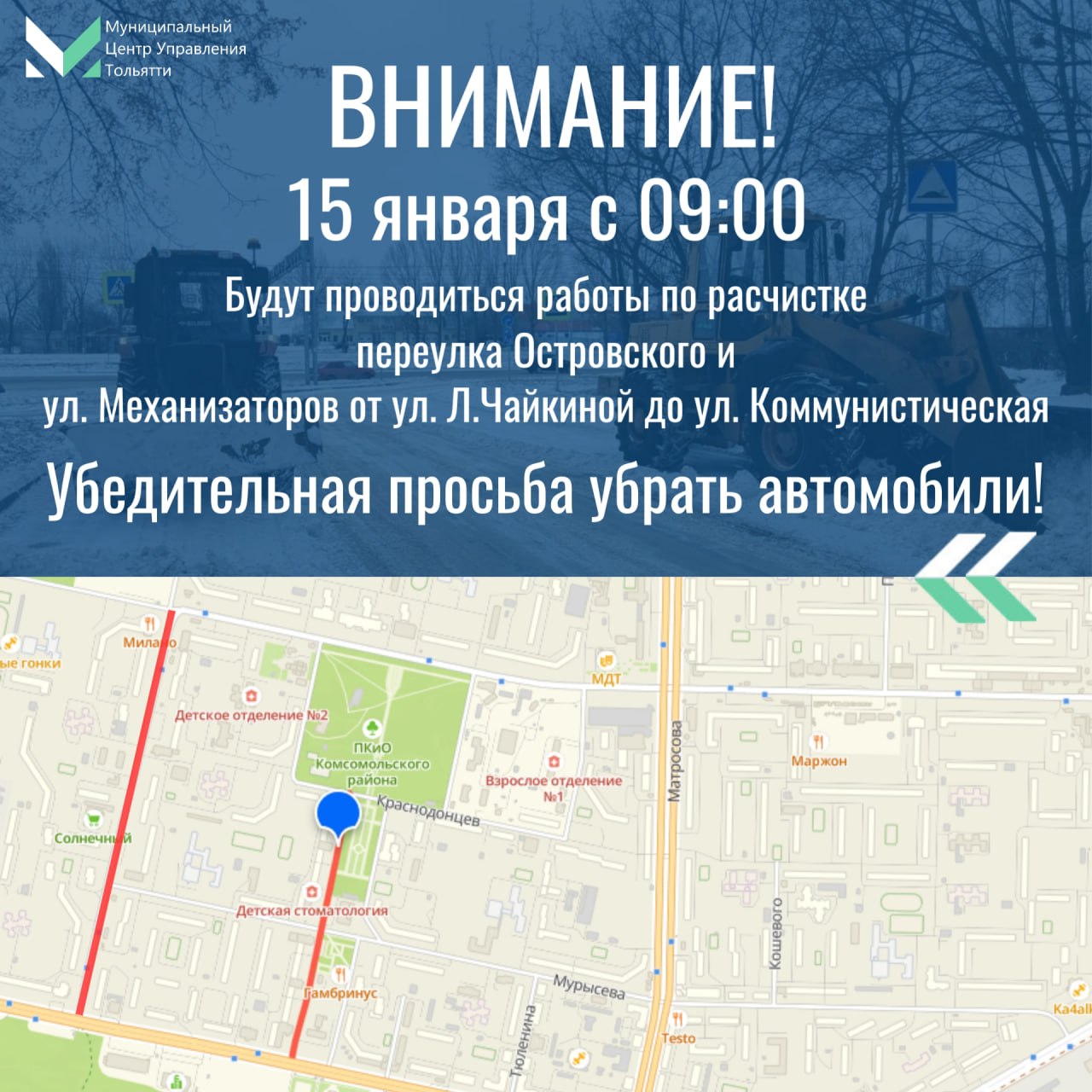 Чтобы уборка прошла максимально эффективно, МЦУ Тольятти просит убрать припаркованные автомобили. Не оставайтесь равнодушными – ваша помощь поможет сделать дороги города чище и безопаснее!
