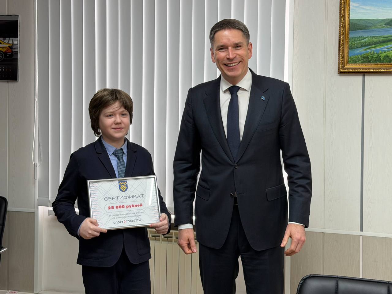 Еще один герой сегодняшнего дня — 11-летний Тимофей Коновалов, победитель Первенства России 2026 года по шахматной композиции. Тимофей занимается шахматами с четырех лет. Он является воспитанником СШОР № 4 «Шахматы» и тоже представляет наш город в региональной сборной. Несмотря на юный возраст, спортсмен неоднократно побеждал и становился призером всероссийских турниров в своей возрастной категории. Подготовил Тимофея старший тренер-преподаватель высшей категории Дмитрий Александрович Афанасьев, который не раз был отмечен администрацией г.о. Тольятти за эффективную работу, подготовил множество талантливых спортсменов и входит в тренерский состав сборной команды Самарской области по шахматам.