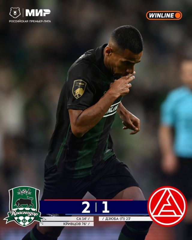 Футболисты «Краснодара» обыграли тольяттинский «Акрон» со счетом 2:1 в домашнем матче восьмого тура Российской премьер-лиги (РПЛ).В составе хозяев голы забили Виктор Са (14-я минута) и Никита Кривцов (76), у гостей отличился Артем Дзюба (23, с...