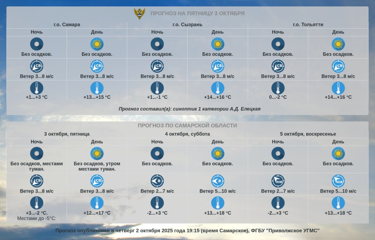 Согласно данным ПРИВОЛЖСКГИДРОМЕТ температура днем будет +12...+17 градусов. Ночью -2...+3. Осадки не ожидаются. Только небольшой туман. Ветер 3...8 м/с.