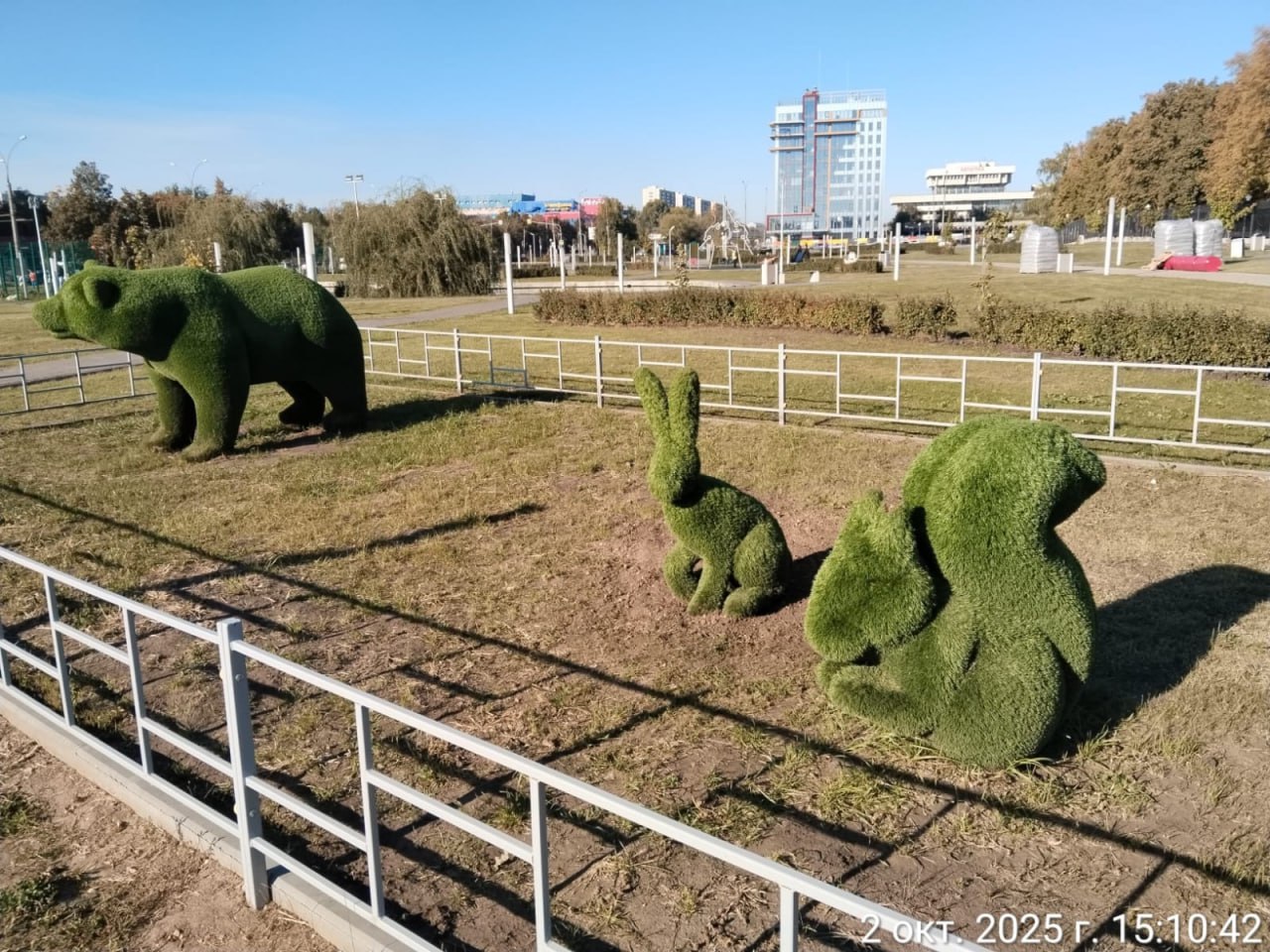 Чтобы продлить срок службы зеленых фигур, территория вокруг была ограждена. Однако основание зайца было повреждено.