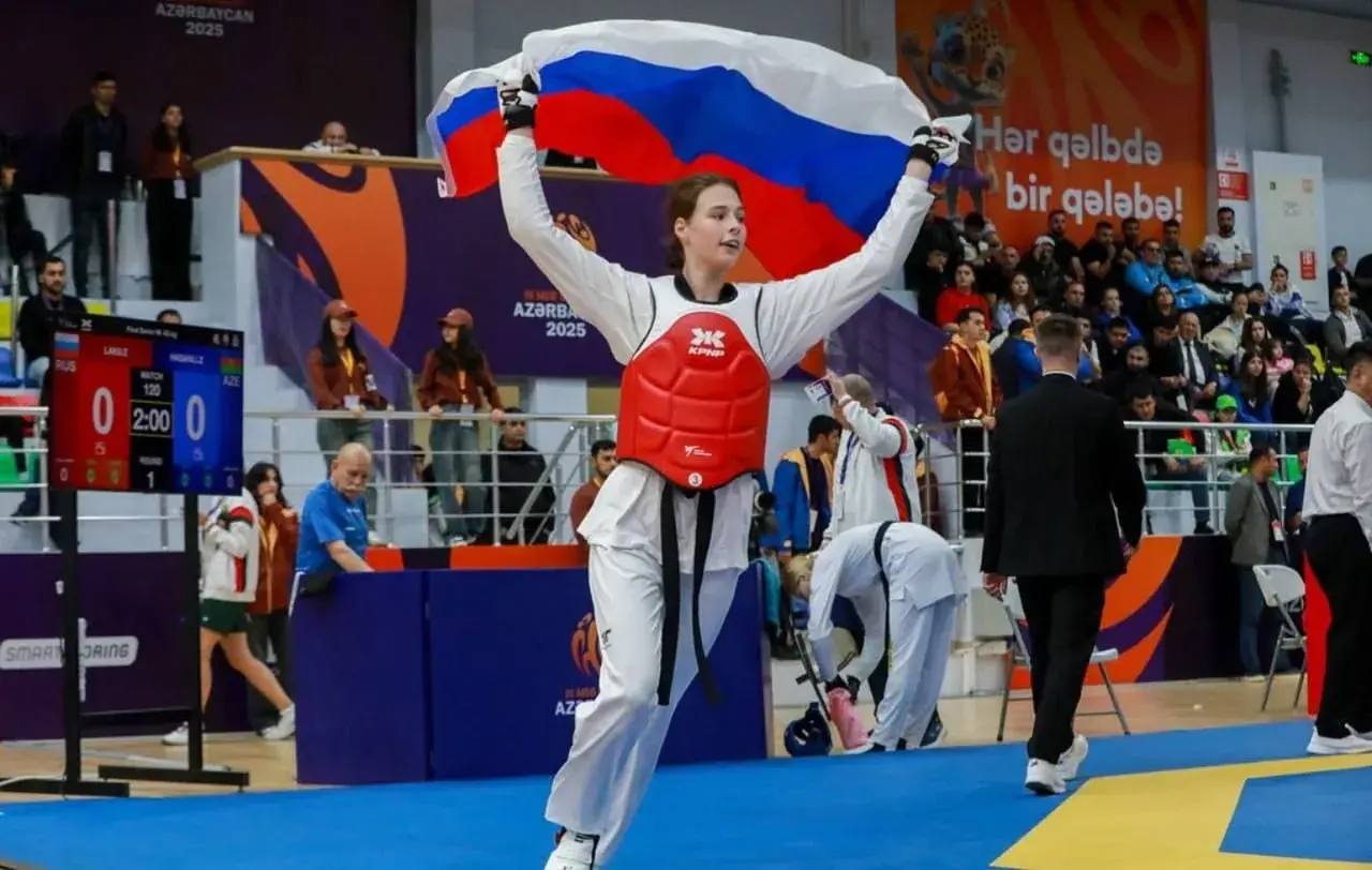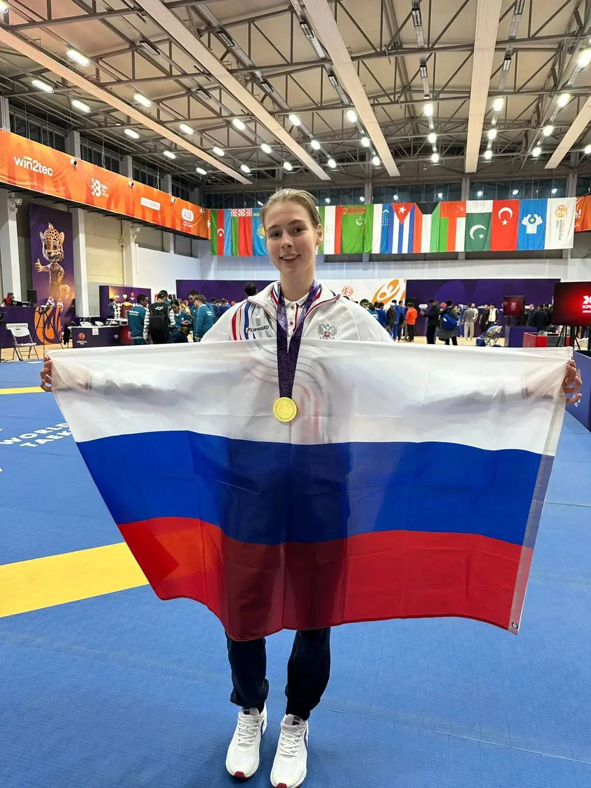 Соревнования проходят в Азербайджане. Более 1600 участников из 13 стран. В турнире по тхэквондо Кира Скворцова из Самарской области завоевала золотую медаль в весовой категории до 62 кг.