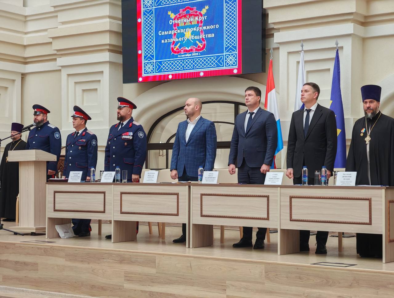 Сегодня губернатор Вячеслав Андреевич Федорищев работает вместе с членами регионального правительства, главами городов и муниципальных районов Самарской области у нас в Тольятти. Мы удостоены чести принимать Круг Самарского окружного казачьего общества, который проходит в Поволжской академии образования и искусств им. Святителя Алексия, митрополита Московского.