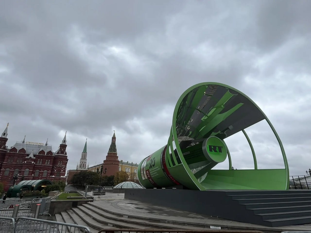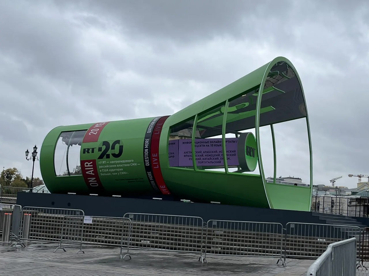 К своему 20-летию телеканал установил необычный объект-телевизионную студию в виде рупора на Манежной площади в Москве.
