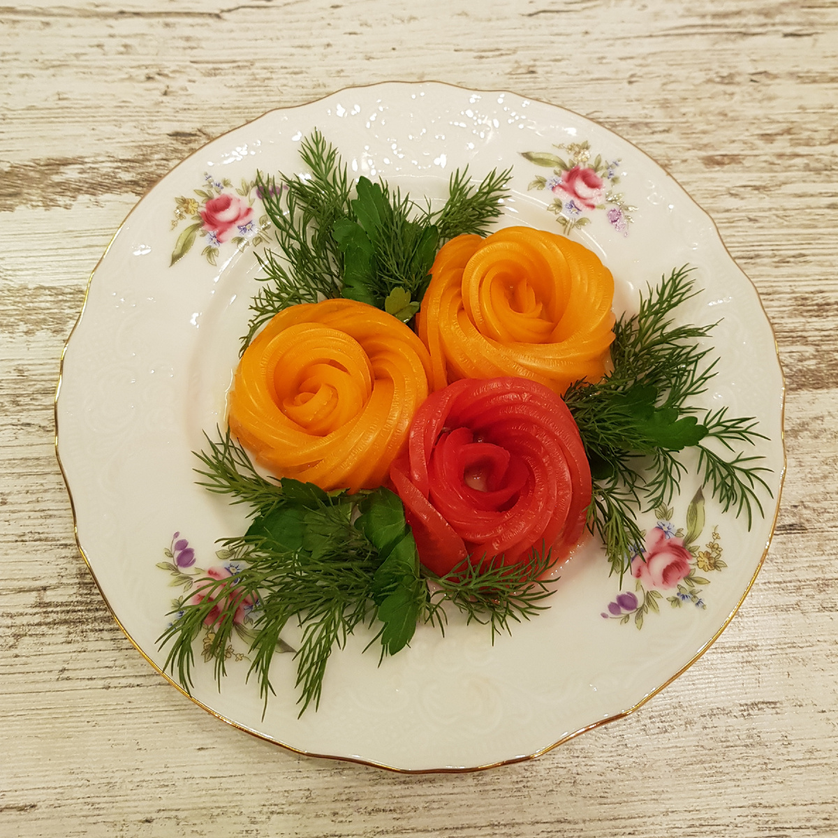 Создание помидорных роз — это не только кулинарное искусство, но и настоящее рукоделие. Чтобы получить эффектные «цветы», следуйте следующим шагам: