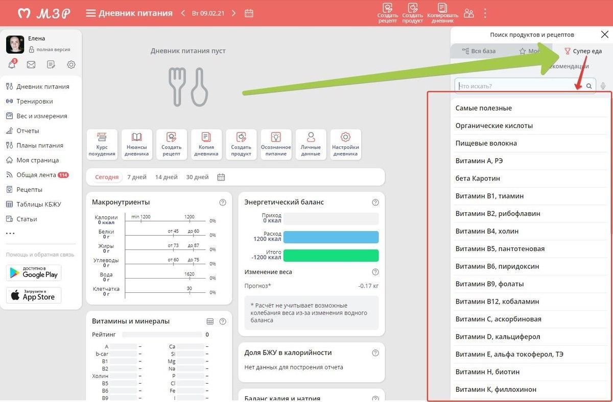 Каждый может подобрать для себя несколько суперфудов, опираясь на данные, доступные в приложении, и тем самым сформировать полноценный рацион, который станет не только питательным, но и вкусным. Список простых и доступных продуктов, называемых суперфудами, собирается под хештегом #суперфуды, и там можно найти множество полезных рекомендаций.
