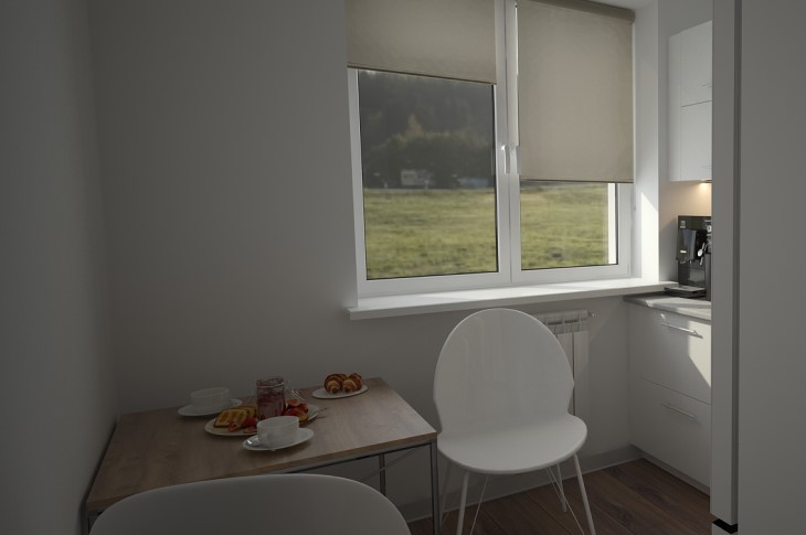 Чтобы температура в доме находилась на одном уровне, рекомендуется приобрести короткие шторы из не слишком плотного материала.