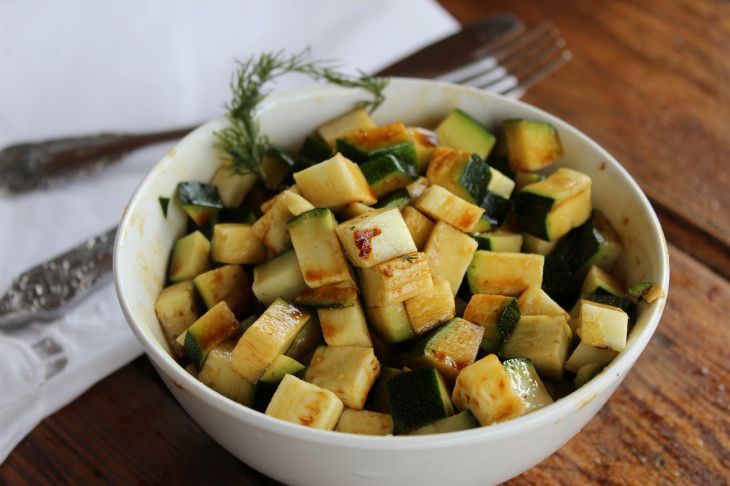 Из кабачков, специй и сыра можно приготовить на обед сытную и нежную запеканку, а подавать ее желательно с острым сметанным соусом и огуречным салатом.