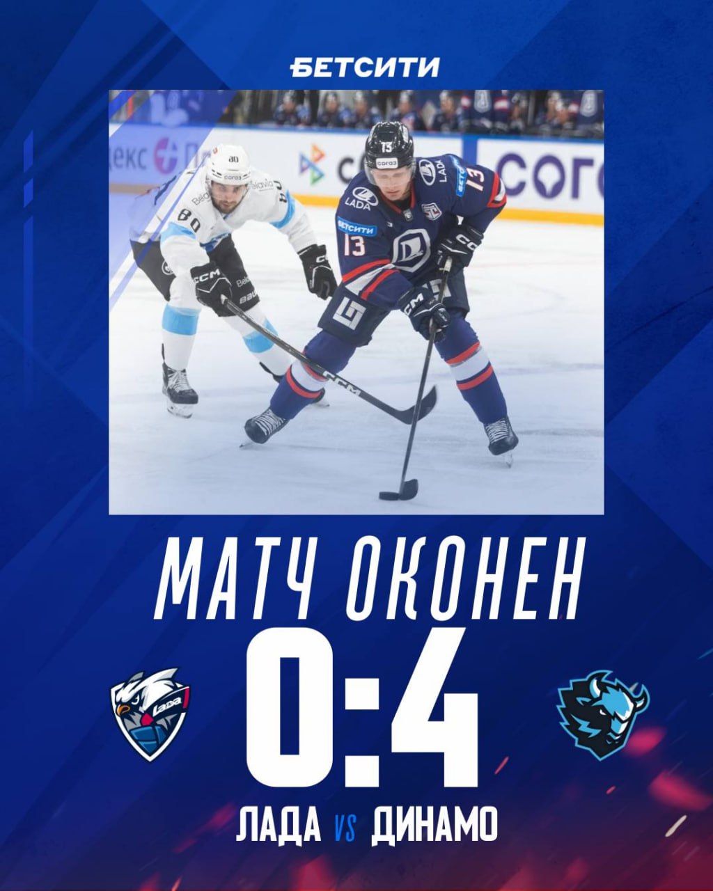 В Тольятти на стадионе «Лада-Арена» прошёл очередной матч регулярного чемпионата Континентальной хоккейной лиги между «Ладой» и минским «Динамо». Встреча завершилась победой гостей со счётом 4:0.