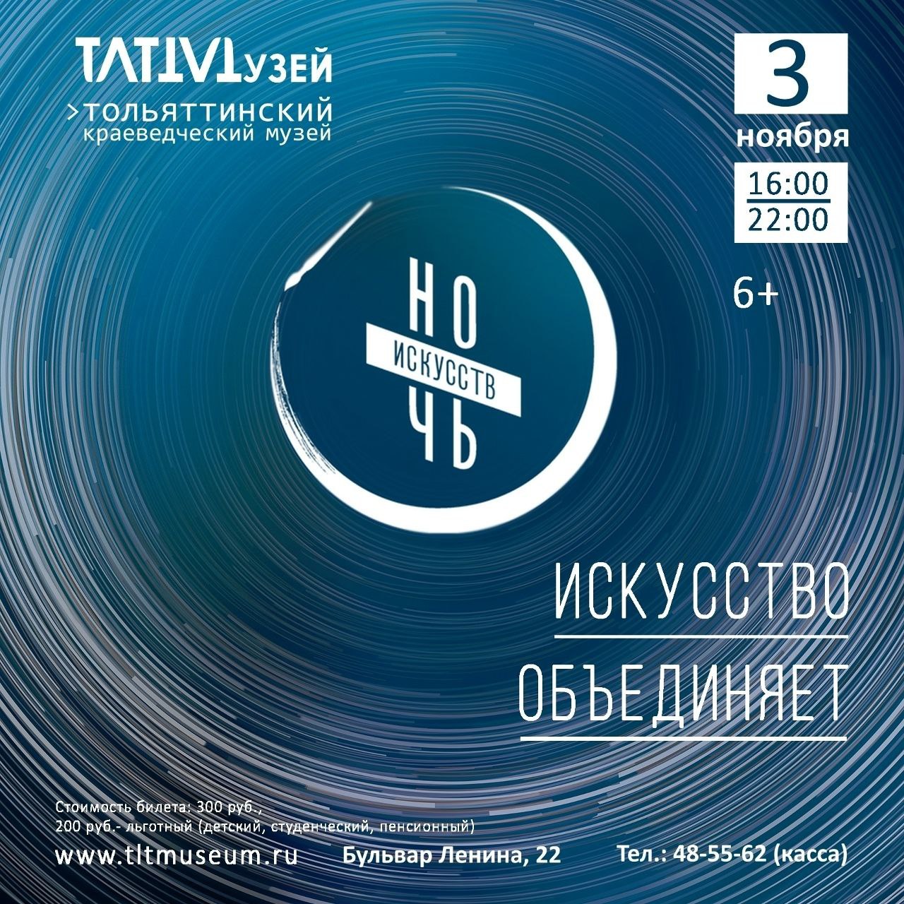 Краеведческий музей Тольятти присоединяется к всероссийской культурной акция «Ночь искусств», которая пройдет под девизом «Искусство объединяет».