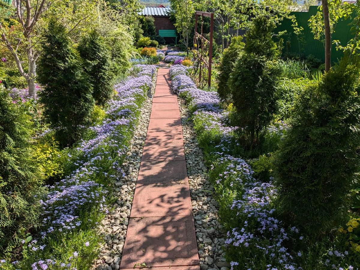 В этом саду овощи и цветы живут в гармонии: картошка соседствует с декоративными растениями, а клубника красуется рядом с виолами. Светлана добавила к своему саду чарующий монастырский огород, окруженный арками, увитыми плетистыми розами, что создаёт уникальную эстетическую картину. Каждый элемент продуман до мелочей: каждое место притягивает взгляд и вдохновение, а в воздухе незаметно витает аромат свежих трав и цветов.