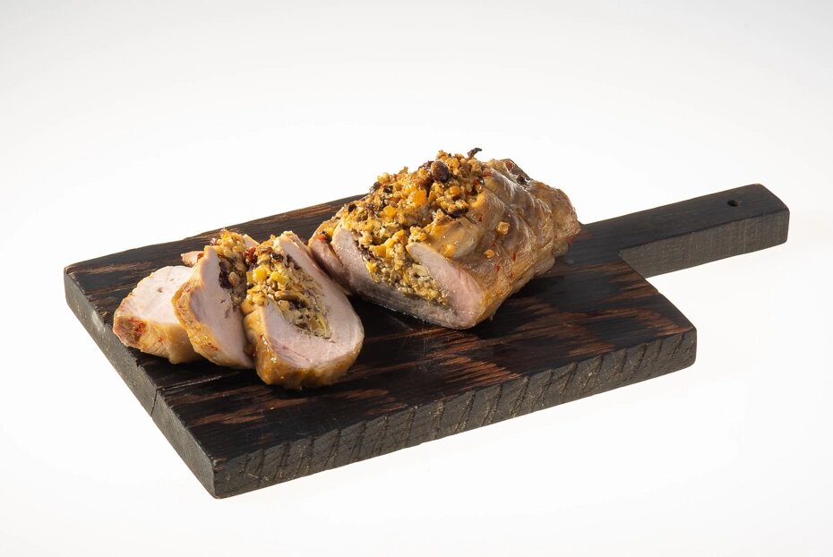Запеченная буженина становится настоящим кулинарным шедевром как на горячий, так и на холодный стол. Ее можно подать в качестве основного блюда, дополненного запеченными овощами, или как закуску, которая украсит любой праздничный стол. Сочетание нежного мяса с начинкой из сухофруктов, яблок и сыра делает это блюдо особенно привлекательным.