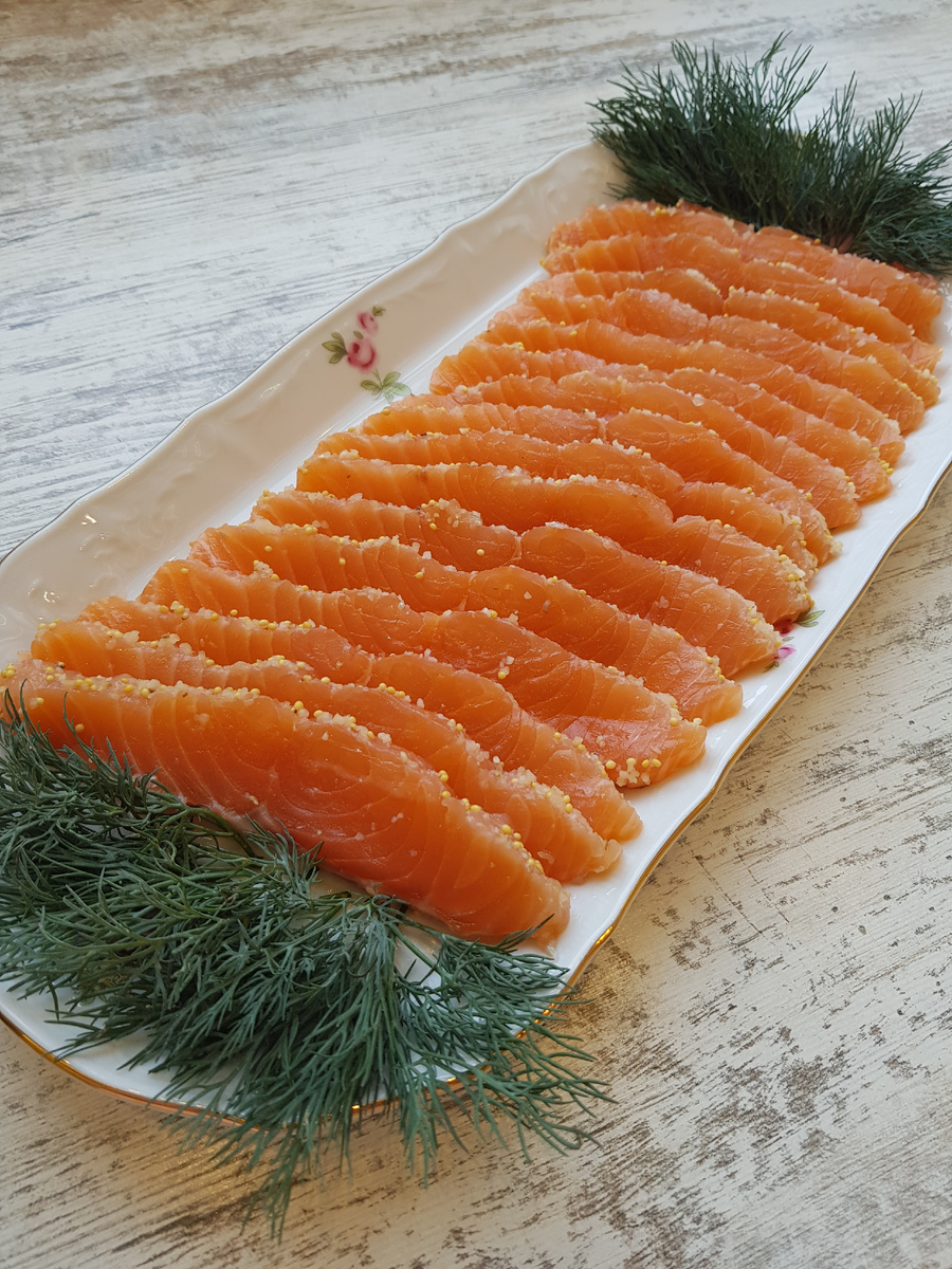 Для разнообразия, вместо семян горчицы можно использовать молотый чеснок, что придаст блюду особый характер. Солёная сёмга порадует всех гостей и станет настоящим хитом на любом мероприятии.