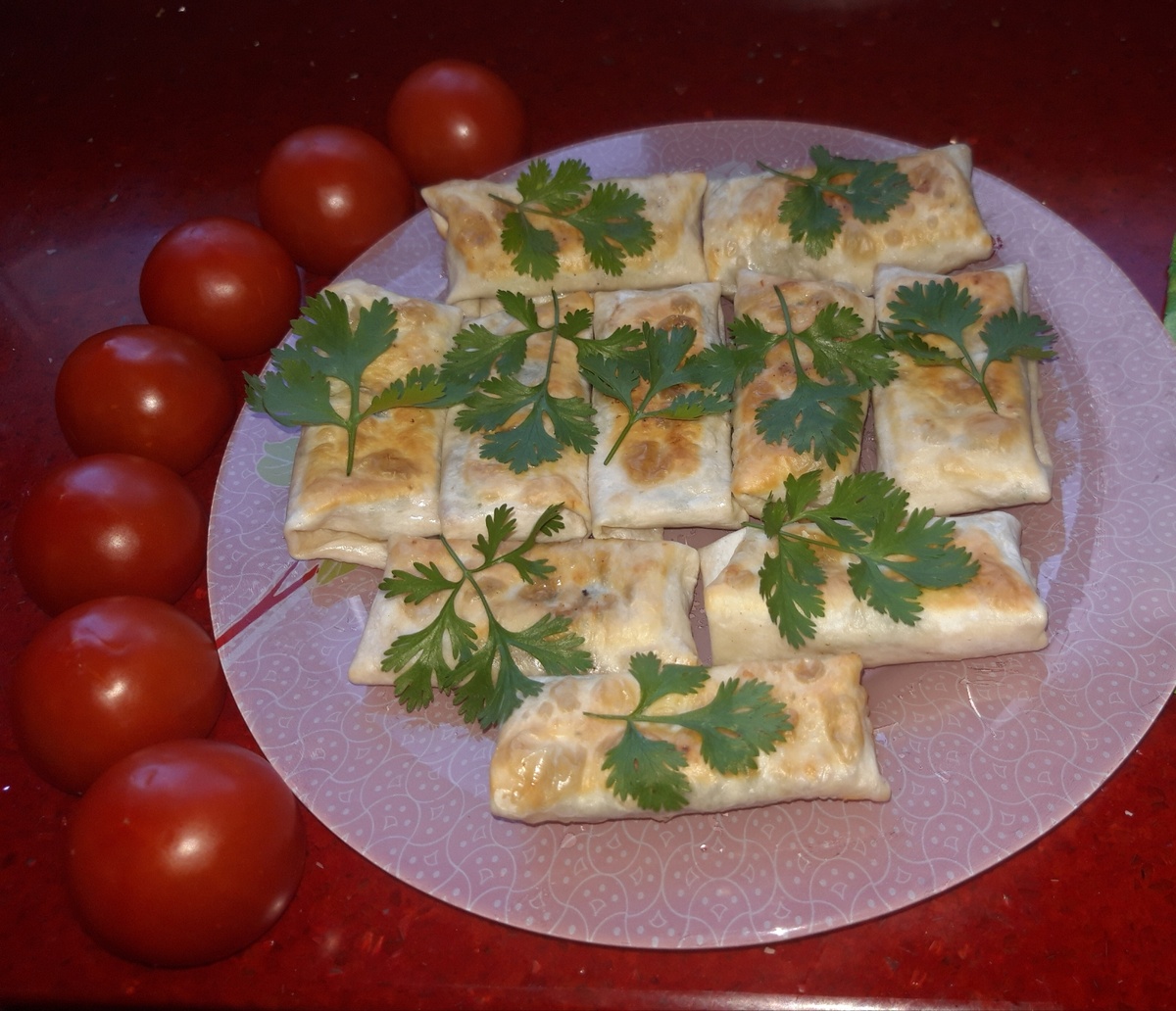 На самый широкий край прямоугольника выкладывается начинка из сыра, зелени и специй, после чего лаваш аккуратно сворачивается в конвертик. Готовые закуски обжариваются на разогретой сковороде с растительным маслом до появления золотистой корочки с обеих сторон. В процессе жарки сыр становится мягким и ароматным, впитывая в себя специи.