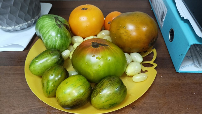 - Атомный виноград Бреда: Эти сладкие помидоры в этом году особенно удивили садоводов. Хотя они выросли больше обычного и приобрели более жесткую кожицу, такой рост скорее положителен. В следующем сезоне планируется уменьшить количество удобрений, чтобы добиться лучшего вкуса.