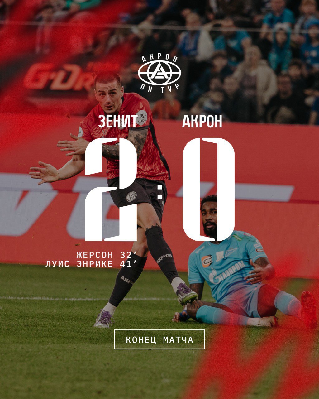 Завершился матч РПЛ. В Санкт-Петербурге сегодня встретились «Акрон» и «Зенит».