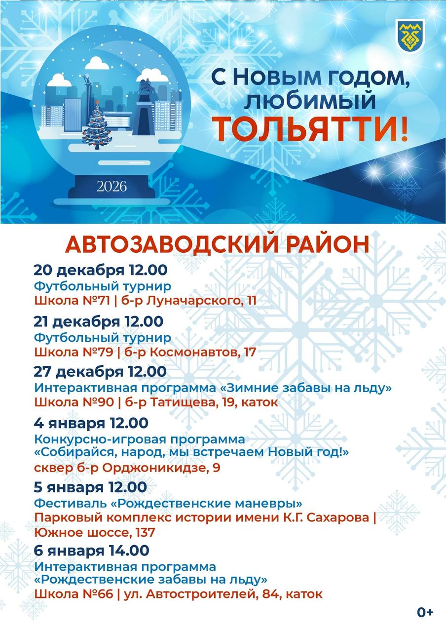 В самую волшебную пору в Тольятти организуют спортивные мероприятия, интерактивные площадки, развлекательные программы во всех районах города.Подробнее - в афише.