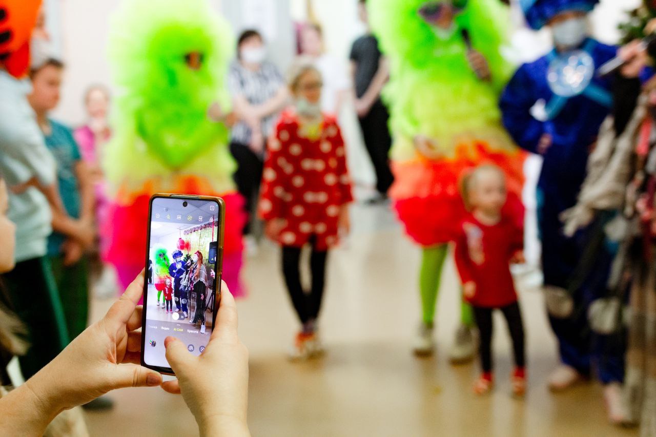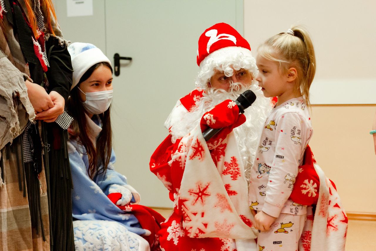 На время праздника юные пациенты действительно забыли про болезни, играли вместе с любимыми мультгероями, весело танцевали со Снегурочкой, рассказывали стихи новогоднему волшебнику и фотографировались на память.