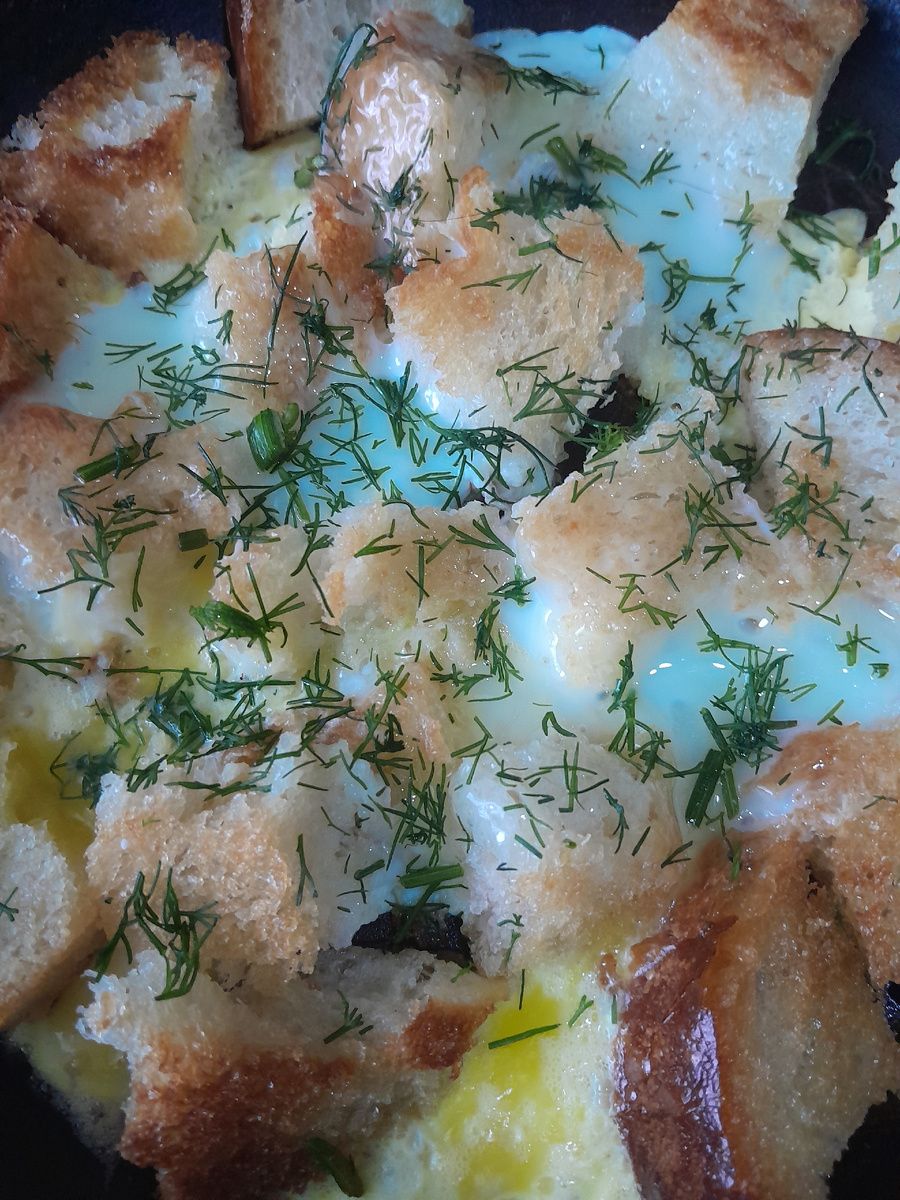 Представьте себе ароматные, хрустящие кубики хлеба, щедро пропитанные сливочным маслом, и нежные яйца, которые создают идеальную текстуру. Это не просто яичница — это настоящий кулинарный шедевр, который можно приготовить всего за несколько минут и насладиться его неповторимым вкусом.