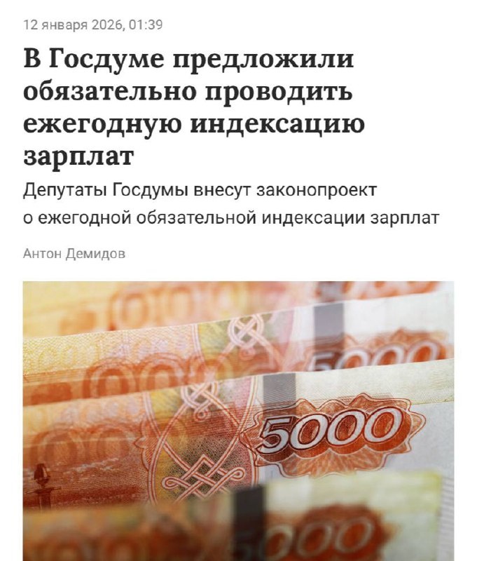 В Госдуму был внесён законопроект, который предполагает обязательную индексацию зарплат в частном секторе, согласно информации от ТАСС.