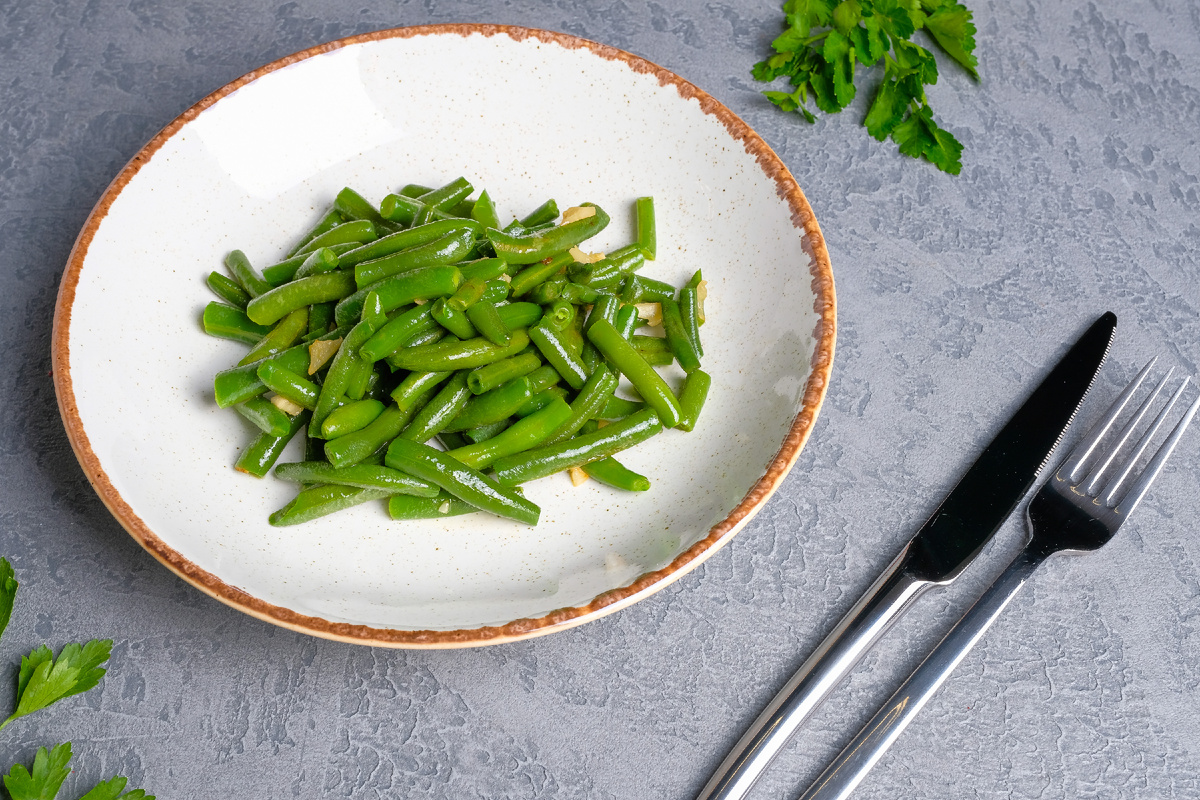 Стручковая фасоль — универсальный продукт, который может стать как основным блюдом, так и изысканным гарниром или свежим салатом. Приготовить её не составит труда, а процесс занимает всего несколько минут. В этом рецепте используется замороженный продукт, но свежая фасоль также подойдёт.