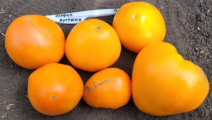 Главная особенность сорта — это его сердцеобразная форма и насыщенный желто-оранжевый цвет. Плоды среднего веса находятся в пределах 200-400 граммов, но иногда достигают и 800 граммов. Индетерминантный тип роста обеспечивает возможность получения большого урожая на протяжении длительного периода.