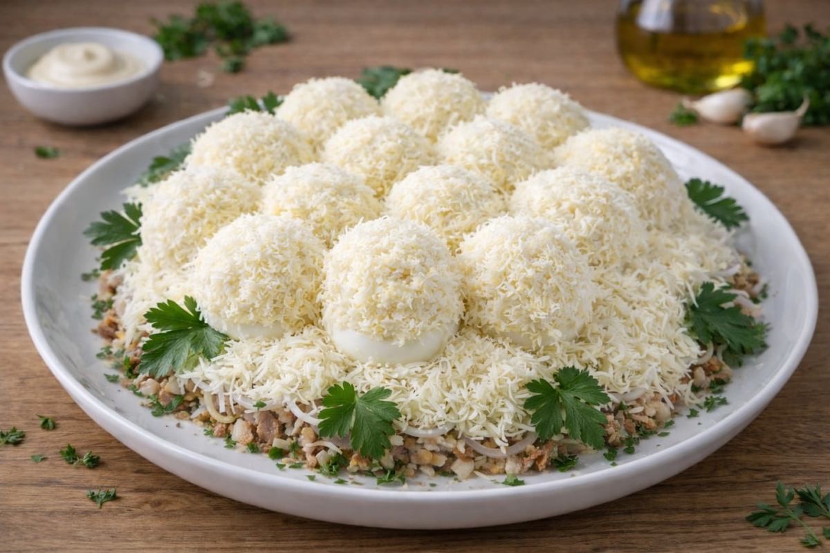 Наверняка, каждый из вас знает, что иногда простые ингредиенты могут создать настоящее кулинарное волшебство. Салат «Рафаэлло» — именно такой случай. Он выглядит так эффектно, что станет звездой любого застолья и исчезнет с вашего стола быстрее, чем можно сказать «С Новым годом».