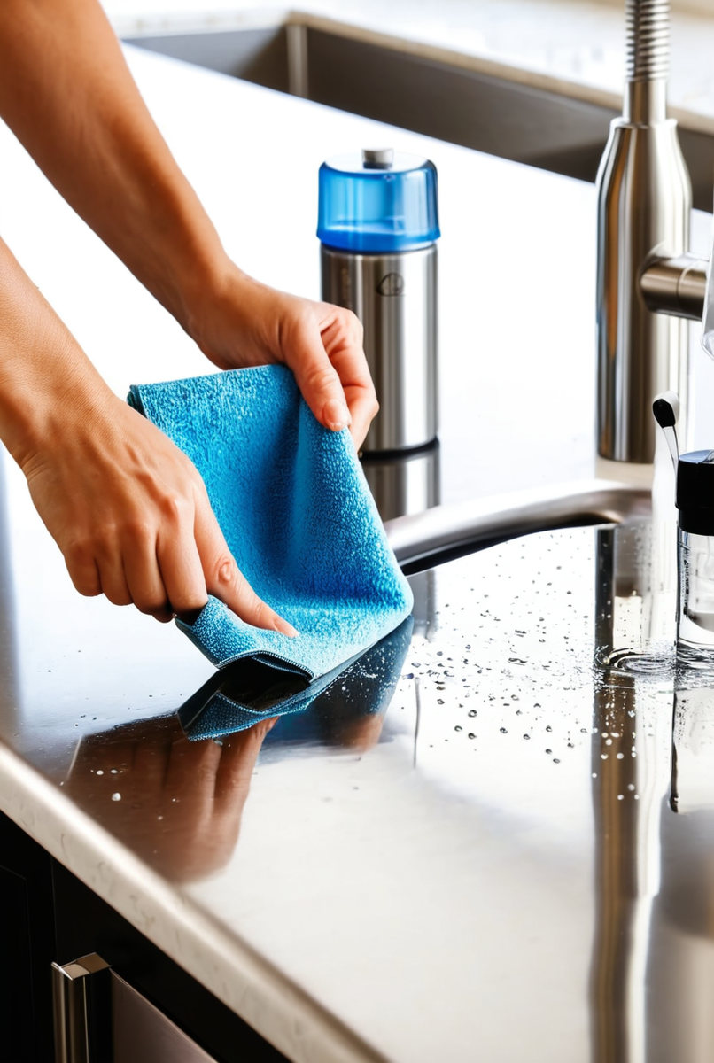 Для жирных пятен на вытяжке или плите применяйте обезжиривающий спрей с паузой в несколько минут, затем аккуратно убирайте. Мойку освободить от налета помогают средства с кислотами, холодильник — отпечатки держит спрей. Если появились стойкие следы, паста для полировки снимает ржавчину, после чего поверхность протирают микрофиброй. В любом случае итоговый блеск достигается тщательной сушкой по текстуре металла.