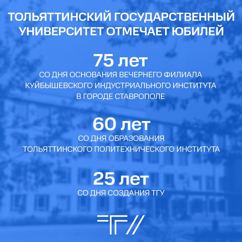 Сегодня ТГУ один из ведущих вузов страны, участник федеральной программы стратегического академического лидерства Приоритет 2030, участник федерального проекта Передовые инженерные школы, опорный вуз Самарской области, центр инновационного и технологического развития региона.