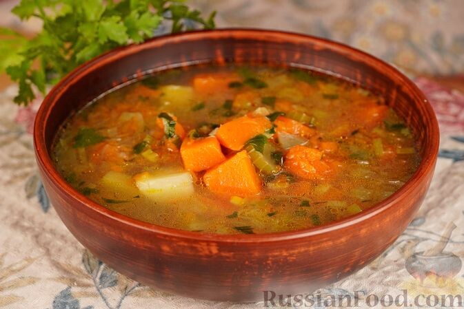 Несмотря на отсутствие мяса и картошки, этот суп получается сытным за счет комбинации чечевицы и кускуса. Подрумяненные овощи: сладкий перец и стебли сельдерея создают отличную базу. Чечевица добавляется в кастрюлю с водой, а кускус засыпается в самом конце, добавляя яркий штрих свежего базилика.