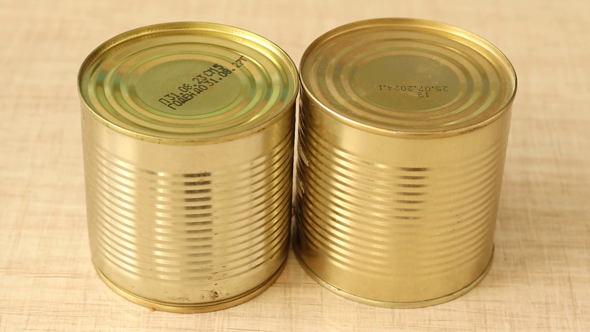 - Консервированные продукты: банка кукурузы и банка красной фасоли