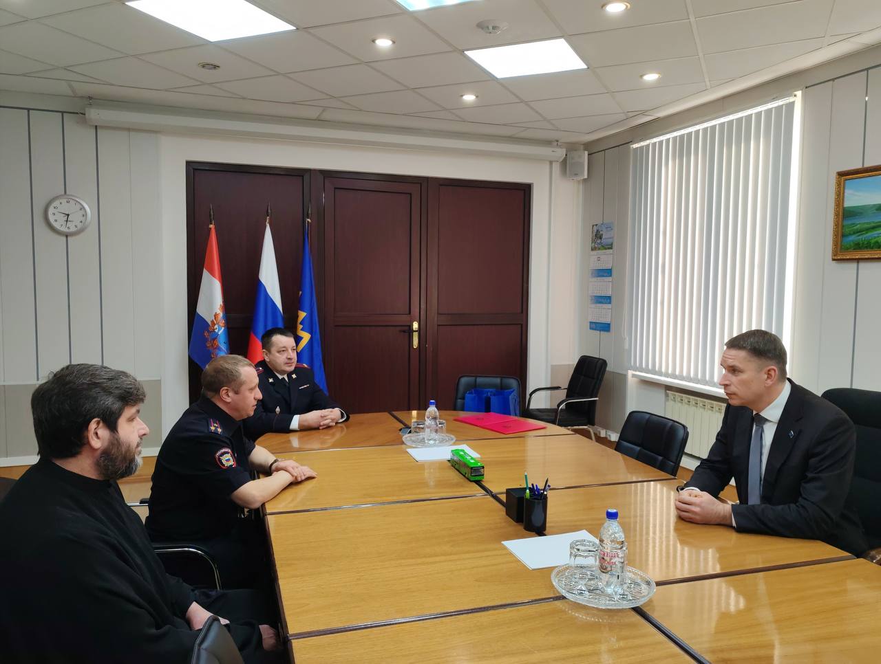 Вместе с заместителем начальника Управления МВД России по г. Тольятти полковником полиции Александром Бросовым глава города вручил Вениамину Манихину благодарственный адрес.