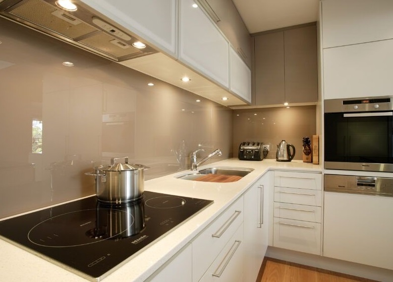 1. Стеклянный фартук на кухне: элегантность и гигиена