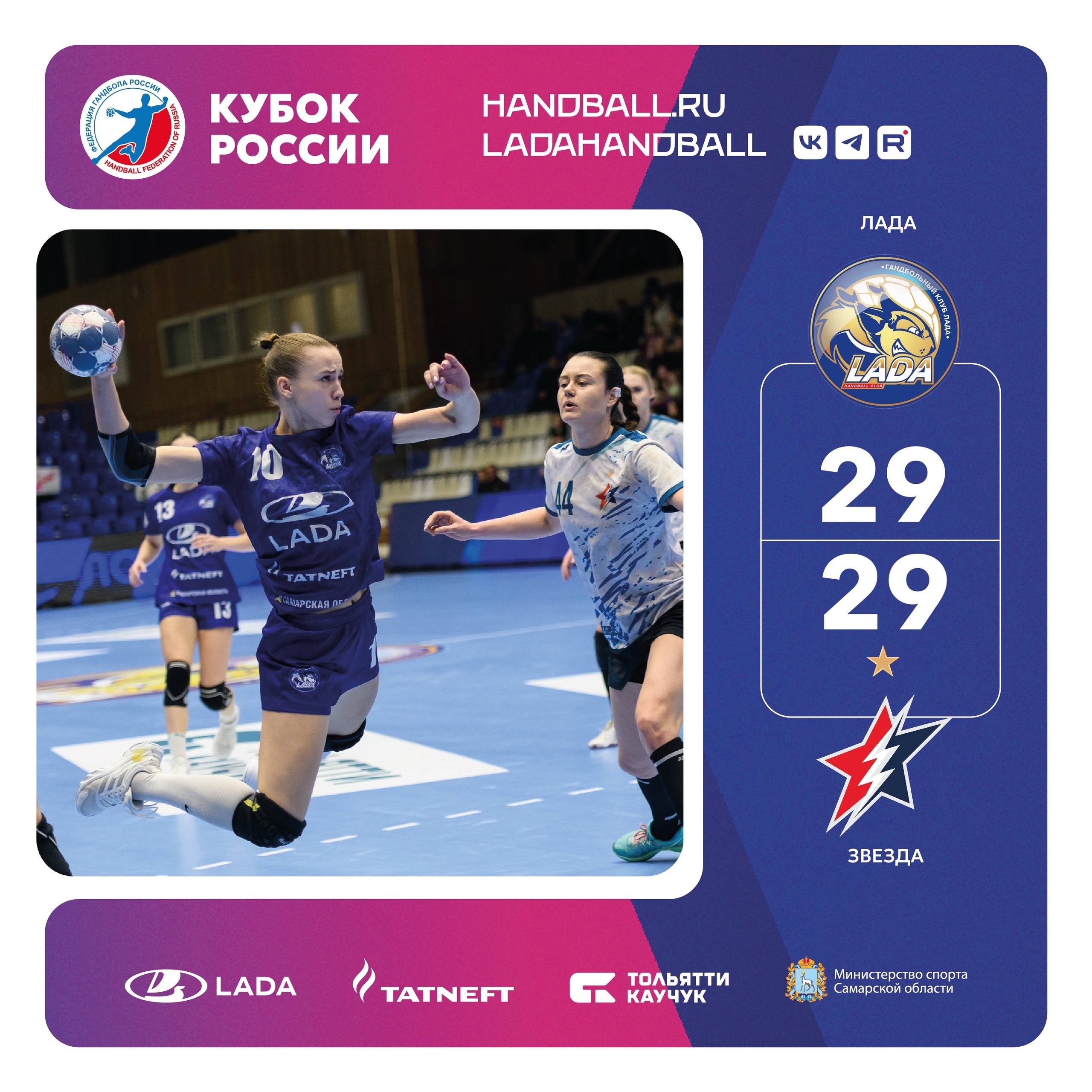 В ответном матче 1/4 финала Кубка России в Тольятти «Лада» сыграла вничью со «Звездой» из Звенигорода — 29:29 (14:13).