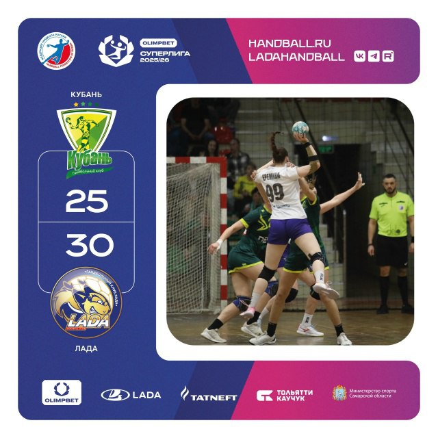 Сегодня в своём 20-м матче предварительного этапа чемпионата России по гандболу тольяттинская «Лада» встретилась в Краснодаре с местной «Кубанью».