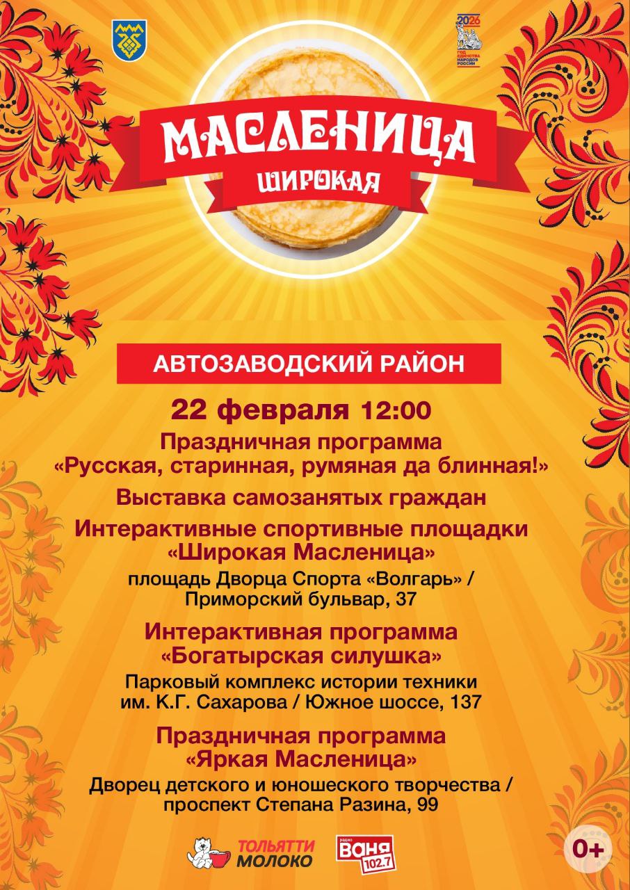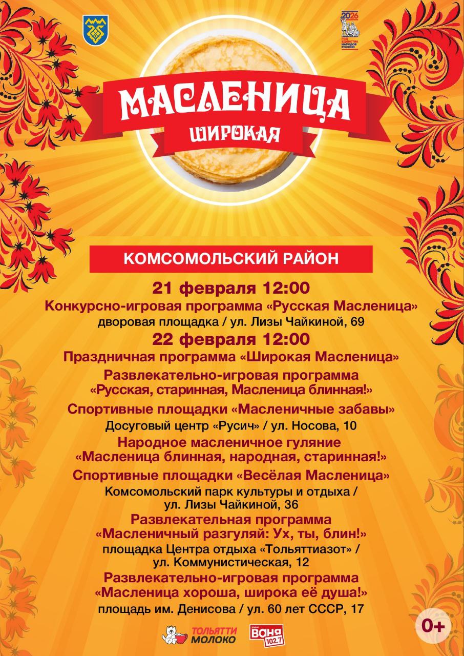 Молодёжный центр «Шанс» приглашает тольяттинские семьи на дворовые праздники: 21 февраля в 12.00 (ул. Л. Чайкиной, 69) и 22 февраля в 12.00 (ул. Баныкина, 62).