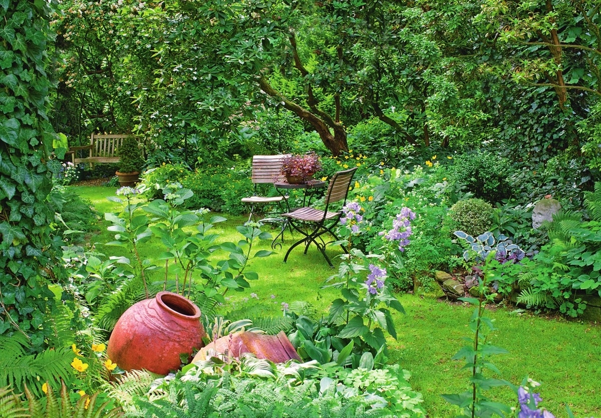 - 1. Под лиственными деревьями: Уголки под раскидистыми деревьями привлекают прохладой. Здесь создается прекрасная игра света и тени, которая выгодно подчеркивает такие растения, как колокольчики и гортензии.