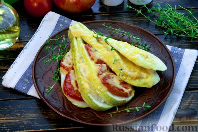 - Веер из кабачков с курицей и помидорами: Нежные ломтики кабачка, обрамляющие куриное филе и яркие помидоры, запеченные под хрустящей сырной корочкой.