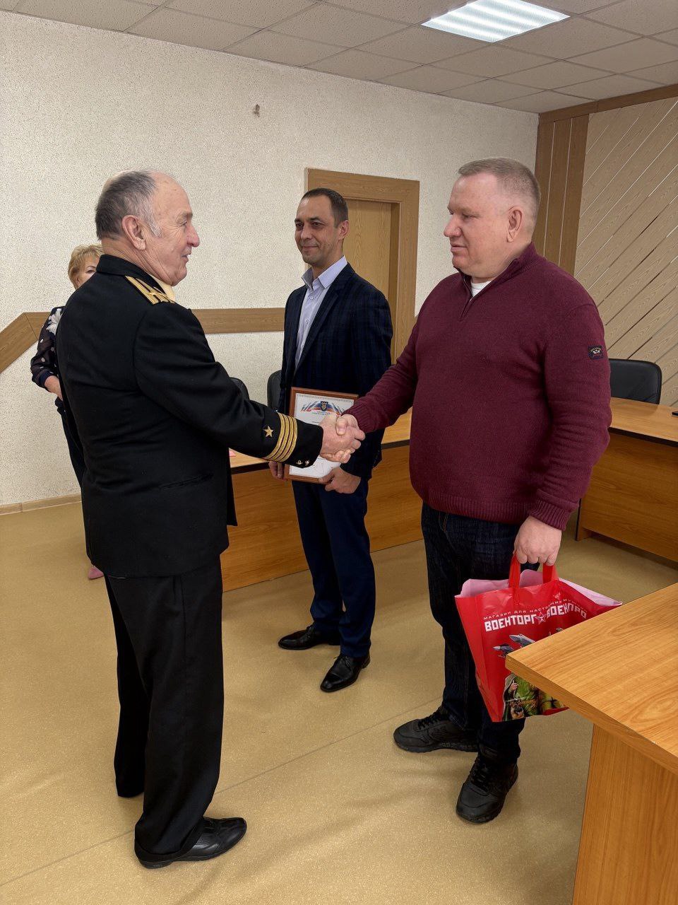 Поздравительные адреса и подарки вручили подполковнику в отставке Владимиру Цветкову, капитану второго ранга в отставке Дмитрию Айдашкину, подполковнику морской пехоты в отставке Евгению Сучкову, подполковнику в отставке Александру Яковлеву и капитану второго ранга в отставке Александру Ильину.