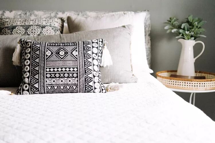 Подбор подушек – это целое искусство. Они должны гармонировать с общим цветовым решением интерьера, а их рисунки и принты должны сочетаться между собой. И что особенно радует – чтобы добавить свежести в спальню, не нужно тратить большие суммы.